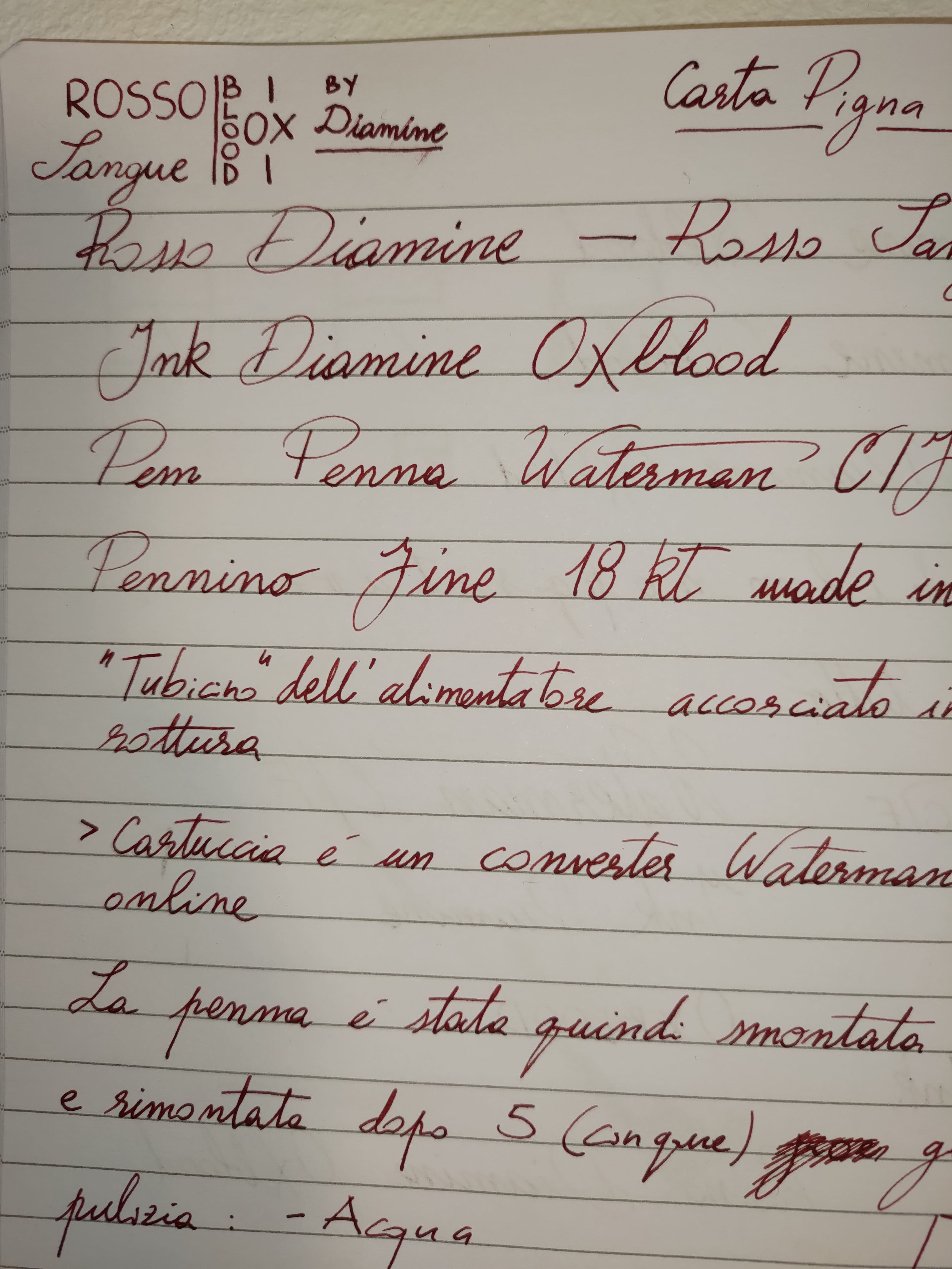 LucaRomanelli ha scritto: lunedì 8 novembre 2021, 0:48 Io sto per provare un Diamine oxblood su una waterman CF che ha un tratto veramente fine. Mi piace come colore perchè è un rosso scuro, mi ricorda un rosso "antico".