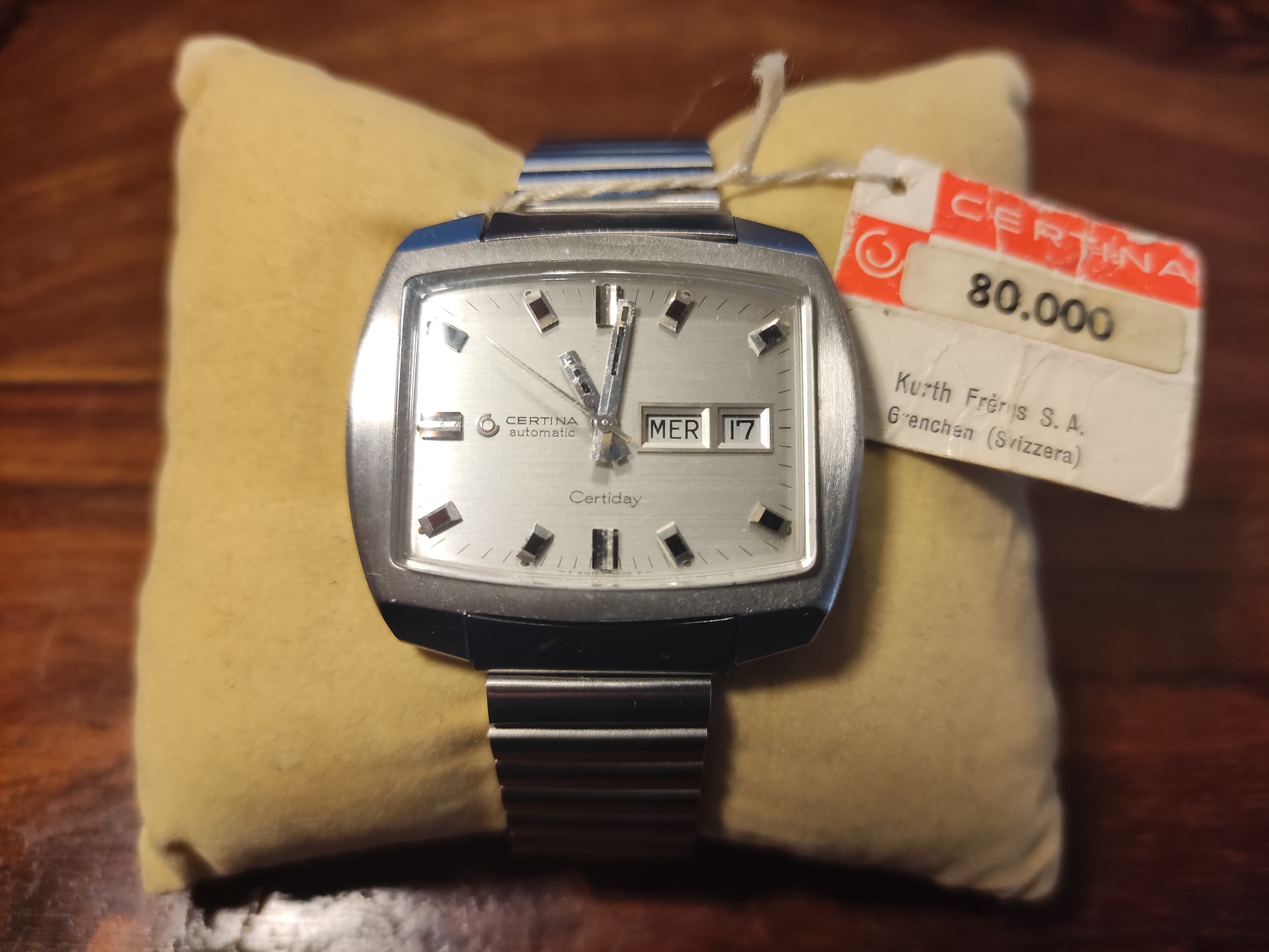 Infine il regalo orologiero: E' un Certina Certiday di forma, trovato in condizioni molto buone, fu prodotto a partire dal 1968 e ricalca i canoni estetici del periodo.IMG_20211226_115434.jpg