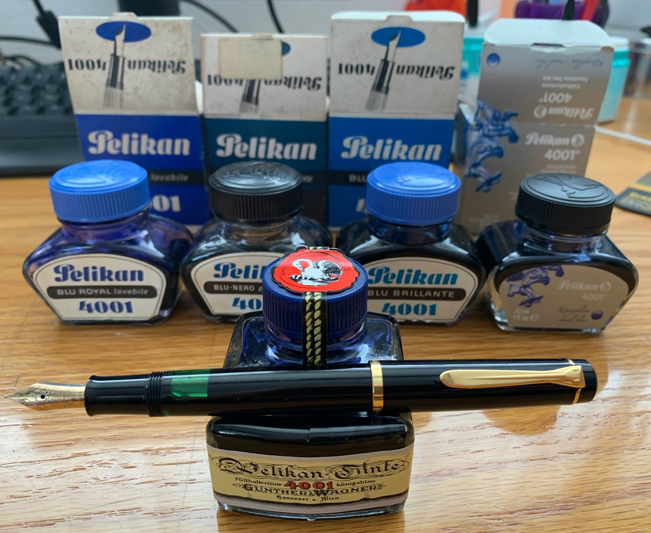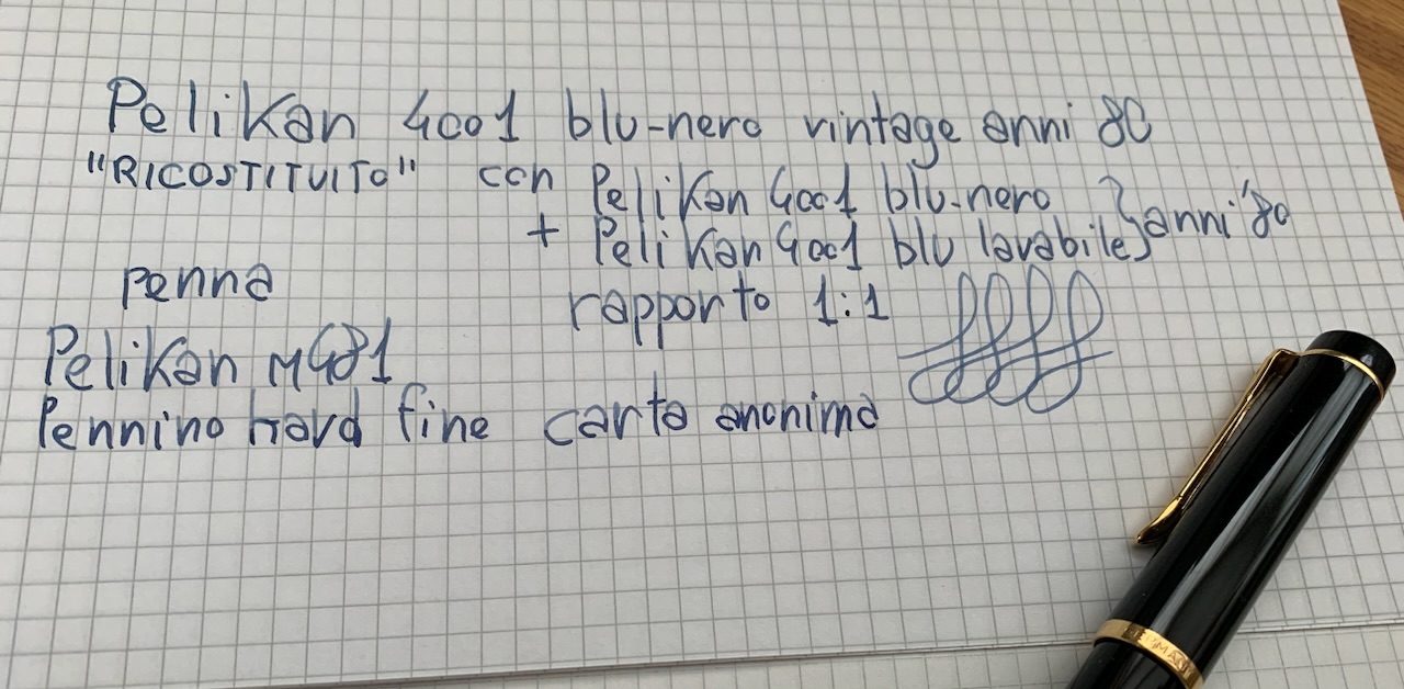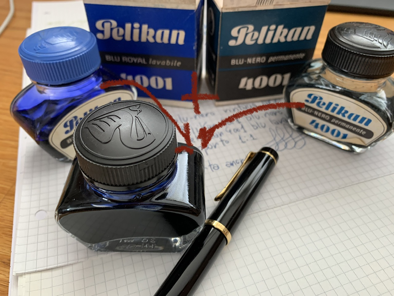 Il Pelikan 4001 Brillant Black fino a metà anni '90 era un bel nero brillante e fluido. Poi è degenerato perdendo saturazione e andando verso il grigio. Parallelamente è diventato meno fluido e granuloso, con la tendenza ad intasare le penne a meno che non fossero annaffiatoi. Tant'è che ero passato al Waterman. Da qualche anno si è ripreso, non è quello dei tempi migliori, ma è un buon nero economico.