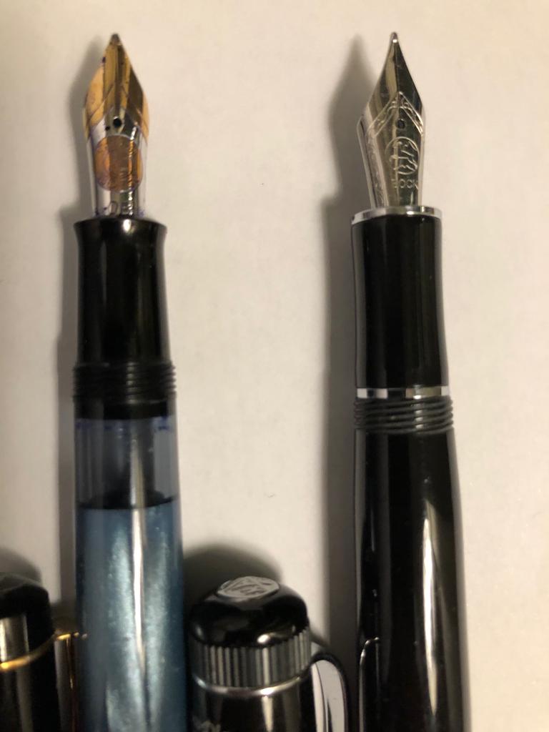 La Parker 45 Custom portava un pennino d'oro, senza dubbio di qualità non inferiore a quella dei pennini di Aurora. Non montava pennini flessibili, ma si tratta della filosofia della penna. Tra l'altro, non so quanti, fra gli appassionati odierni, preferiscano pennini flessibili... Ma naturalmente anche questa è una semplice questione di gusti, non legata al valore oggettivo d'una penna.
