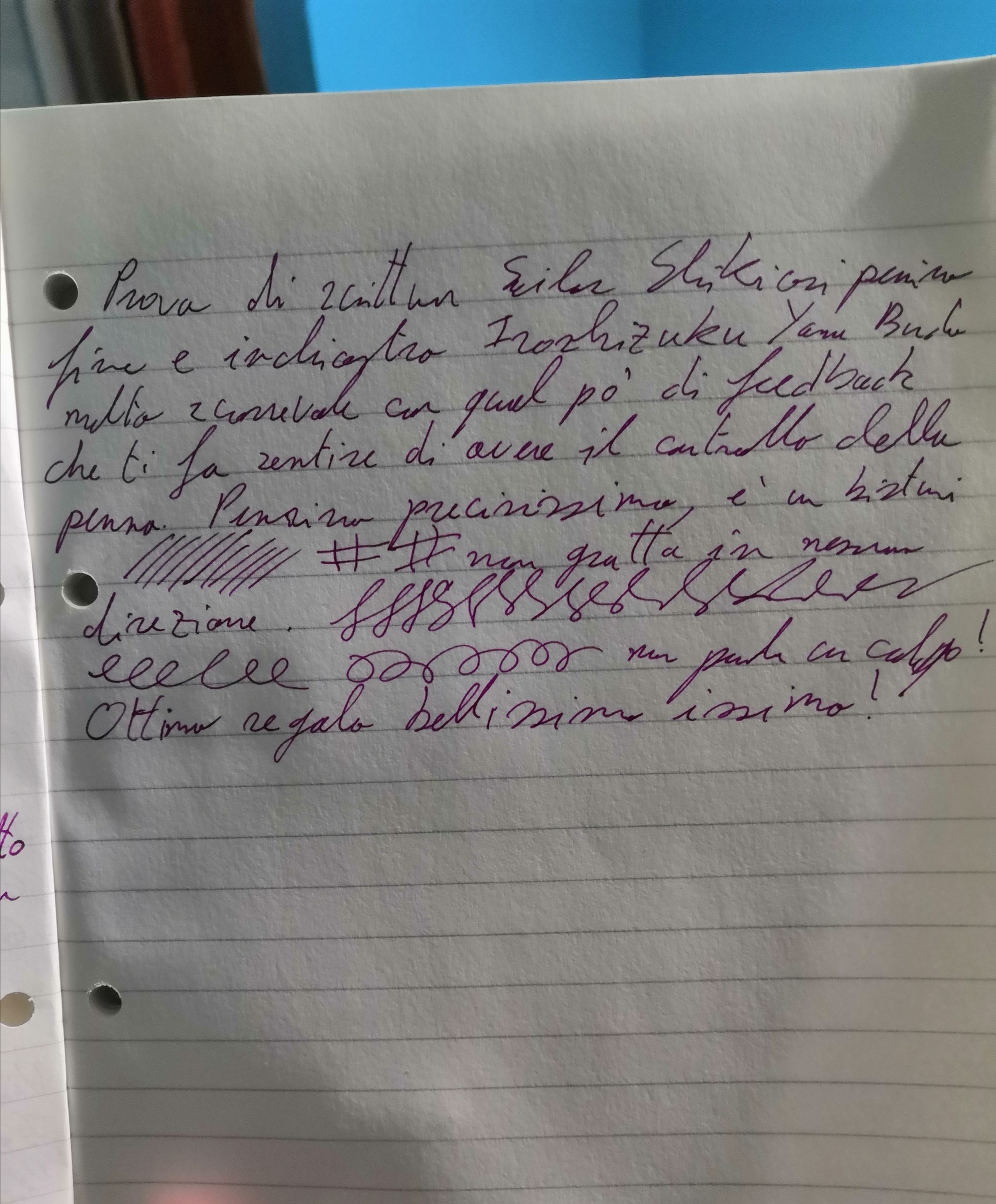 Ecco una prova (di repertorio) più disordinata con una Sailor Shikiori pennino Fine in acciaio. La carta è un quaderno a5 trovato per casa di una carta 80grammi non ben precisata.