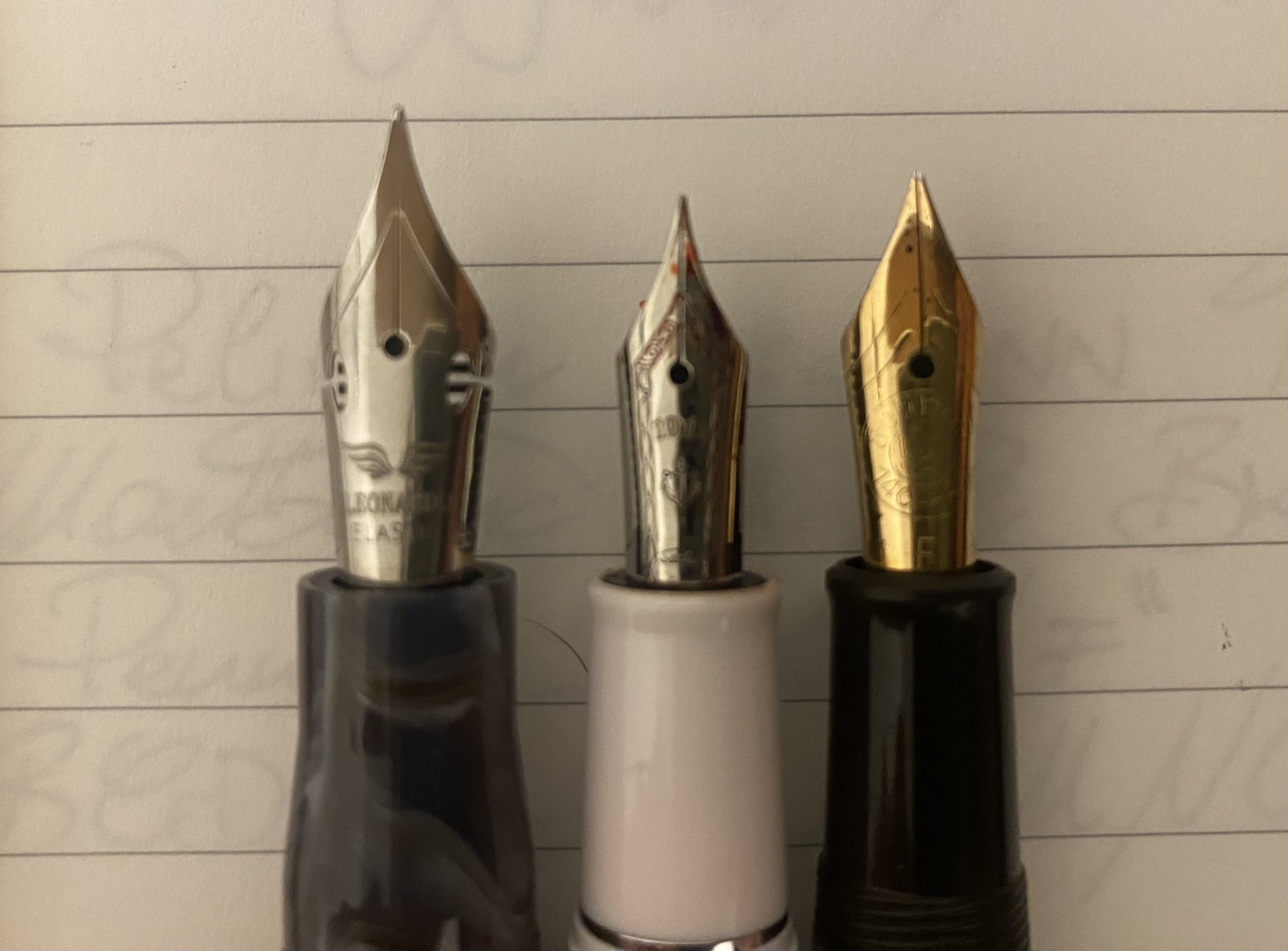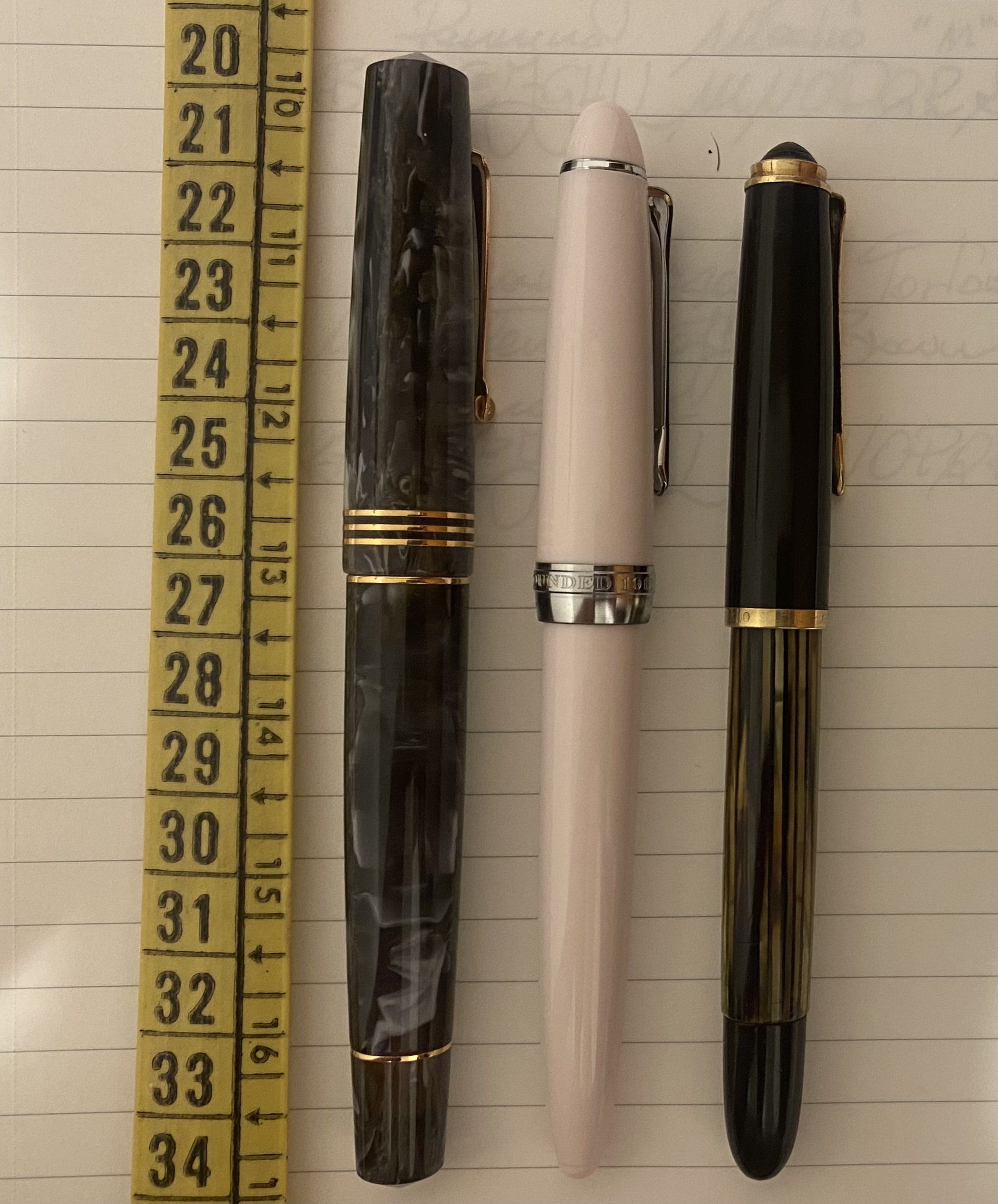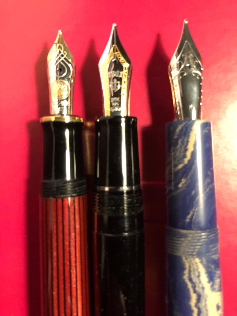 Ecco: quel pennino pelikan è il solo piccolo che riesco ad usare con piacere. Gli altri, vuoi la dimensione dello stesso abbinata ad un corpo piccolo, iniziano a distrurbarmi mentre scrivo.
