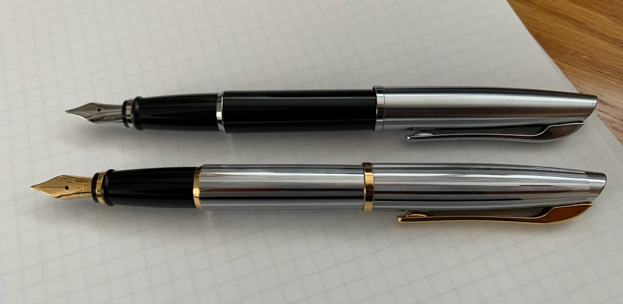 Una in metallo con lavorazione Guillochè con pennino Fine, che è stata il mio regalo di laurea ormai più di 20 anni fa.