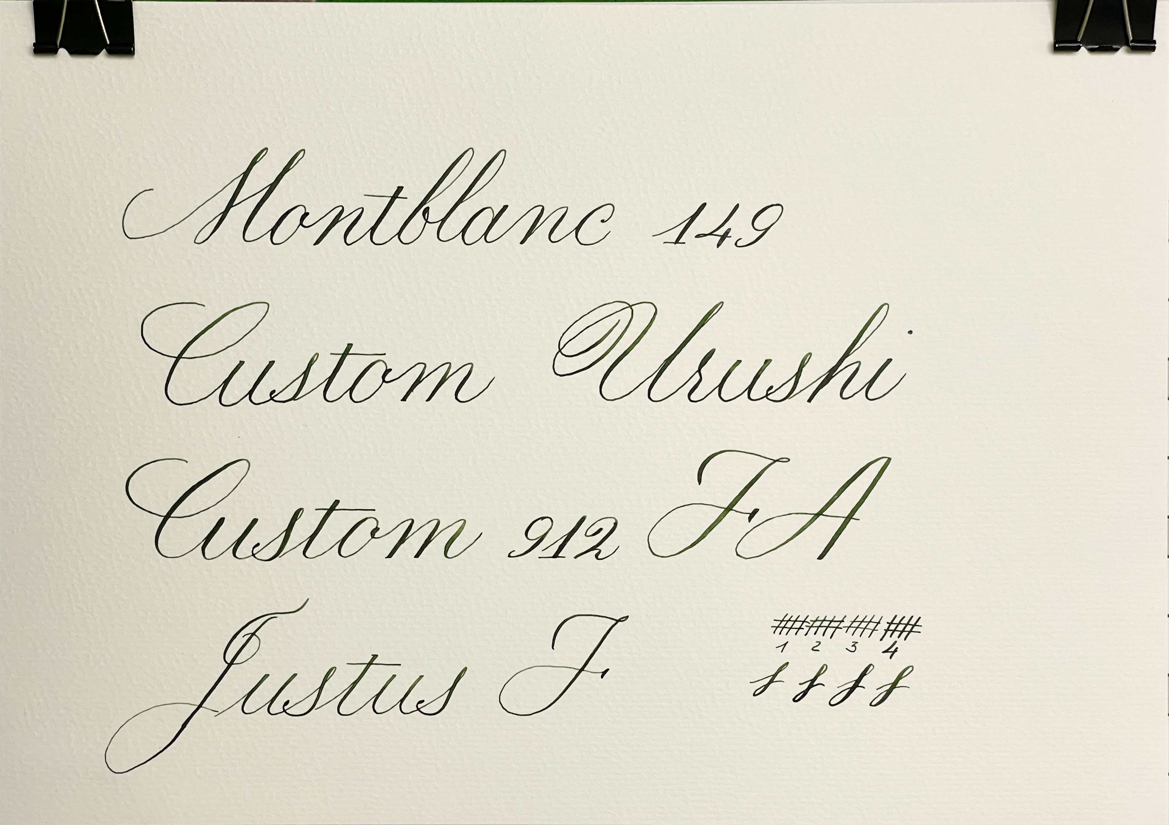 Devo dire che, a parte con X-Feather che è troppo asciutto, la penna rende molto bene. Mi sto abituando talmente tanto alla dimensione della penna che l’unica che mi sembra ancora normale è la 149, a seguire la Capless. Son tornato a fare calligrafia con la 912 e mi pareva un giocattolino