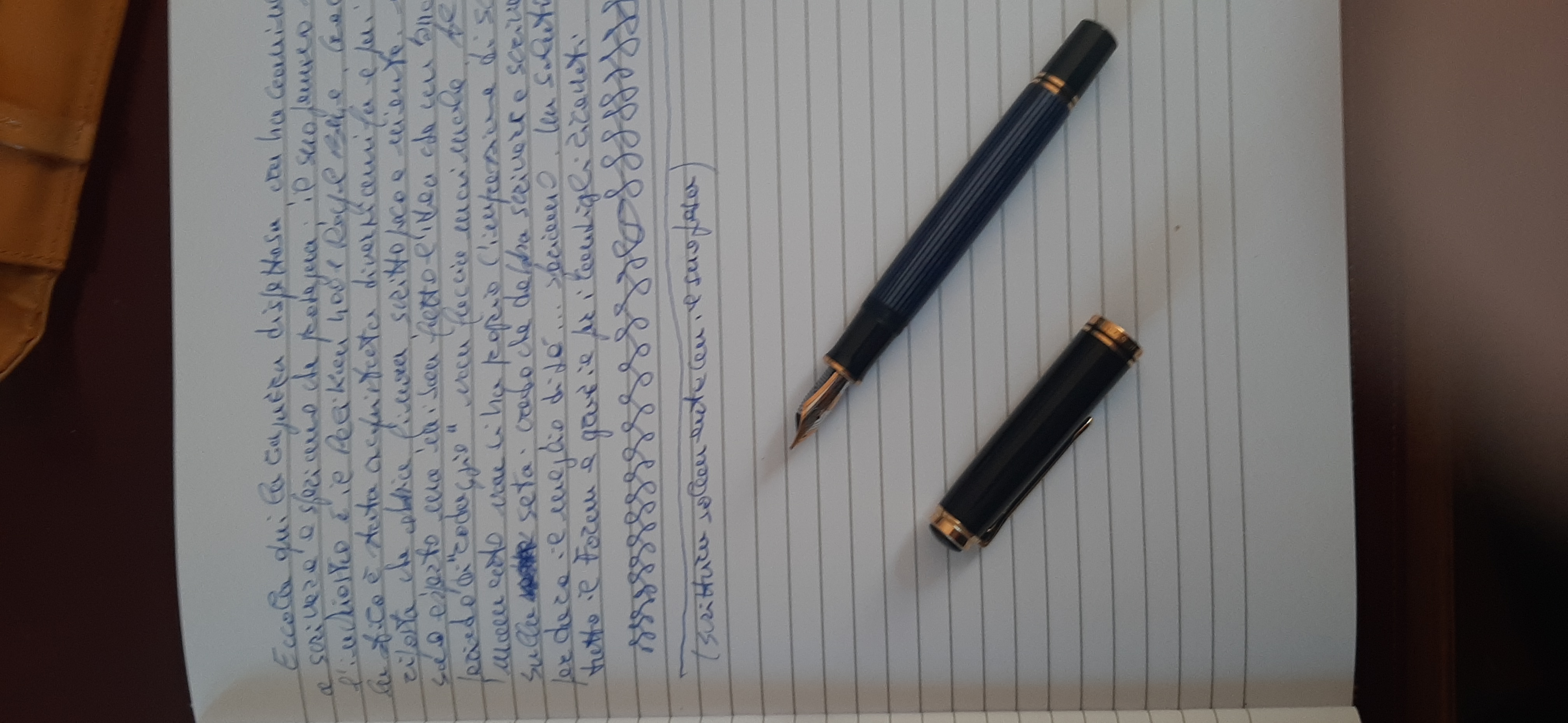 Piccolo aggiornamento, poi saro' piu' esaustivo, la capricciosa Pelikan, dopo una giornata di spessimetro tra i rebbi, ha ricominciato a scrivere ( addirittura scrive con il suo peso), speriamo che continui, il tratto, per essere un M Pelkan, mi sembra contenuto, caricata con il suo inchiostro royal blu ( non penso comunque che il problema risiedesse nell'inchiostro), forse effettivamente i rebbi erano troppo serrati oppure, con lo spessimetro, in qualche modo ho pulito il taglio tra gli stessi. Il pennino Bock e' ancora in trazione con lamella 0,25, appena rimonto vi faro'sapere. Grazie ancora ed auguri a tutto il forum