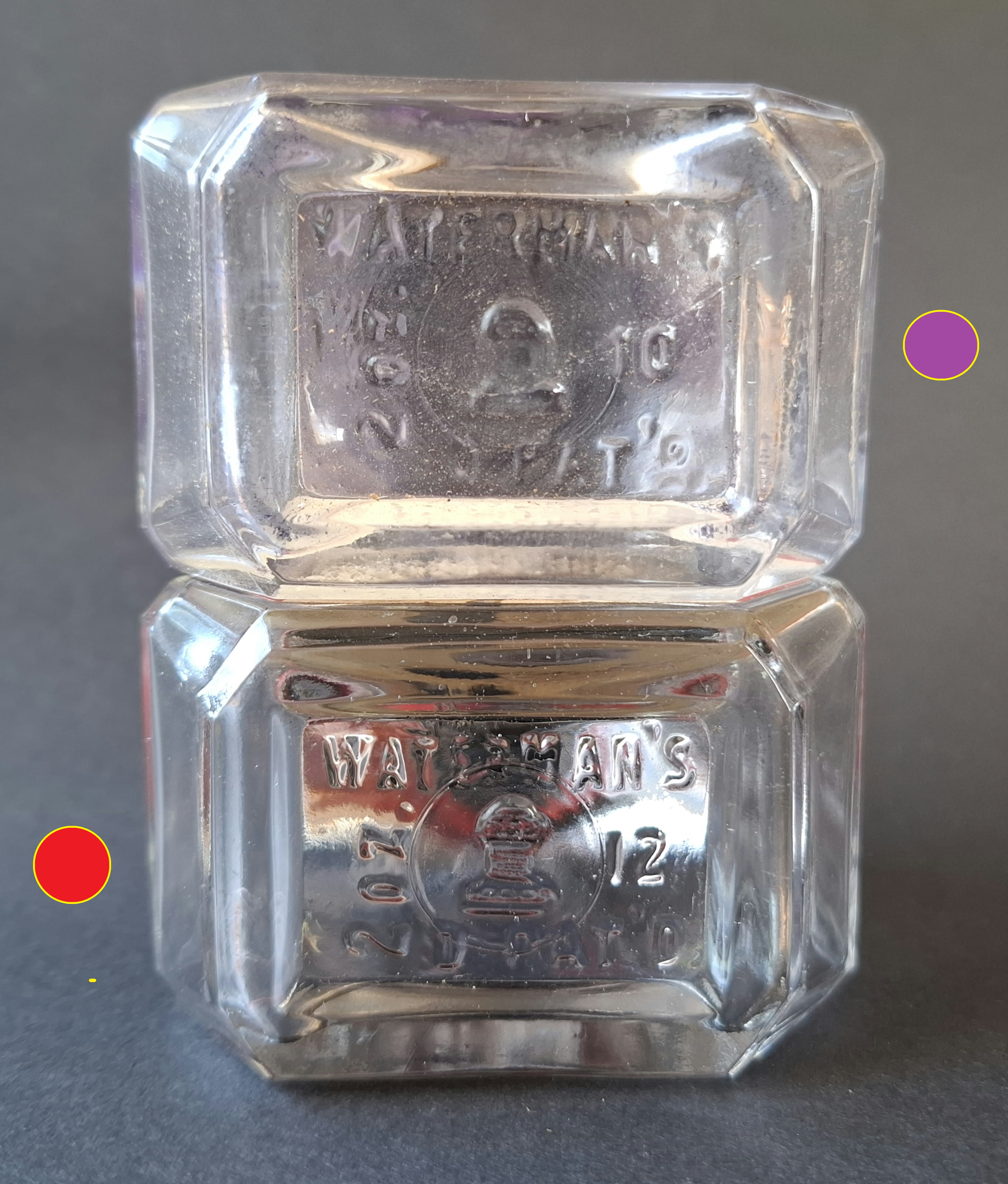 Rispetto a quella mostrata precedentemente che conteneva inchiostro rosso, infatti, ho potuto riscontrare le seguenti difformità nella boccetta del VIOLET: