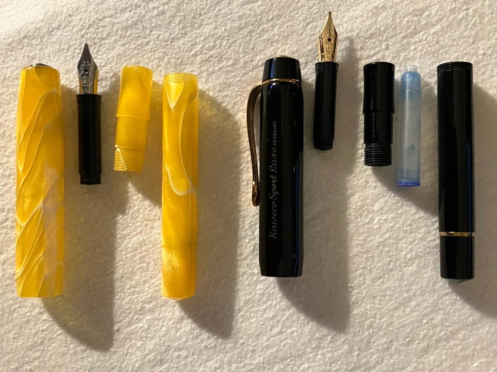intercambiabili tra loro (non badate all'o-ring in silicone sul collarino del Kaweco 250 perchè è una mia aggiunta per la Elite).