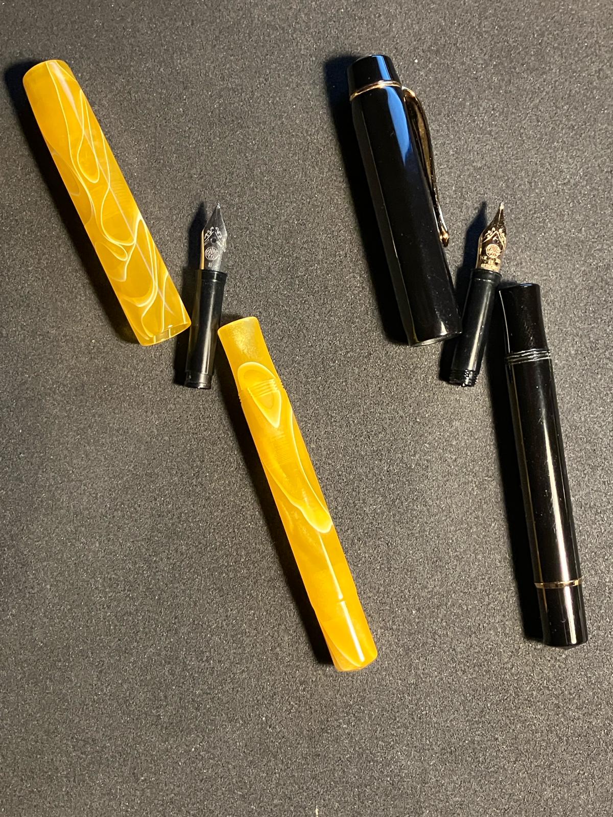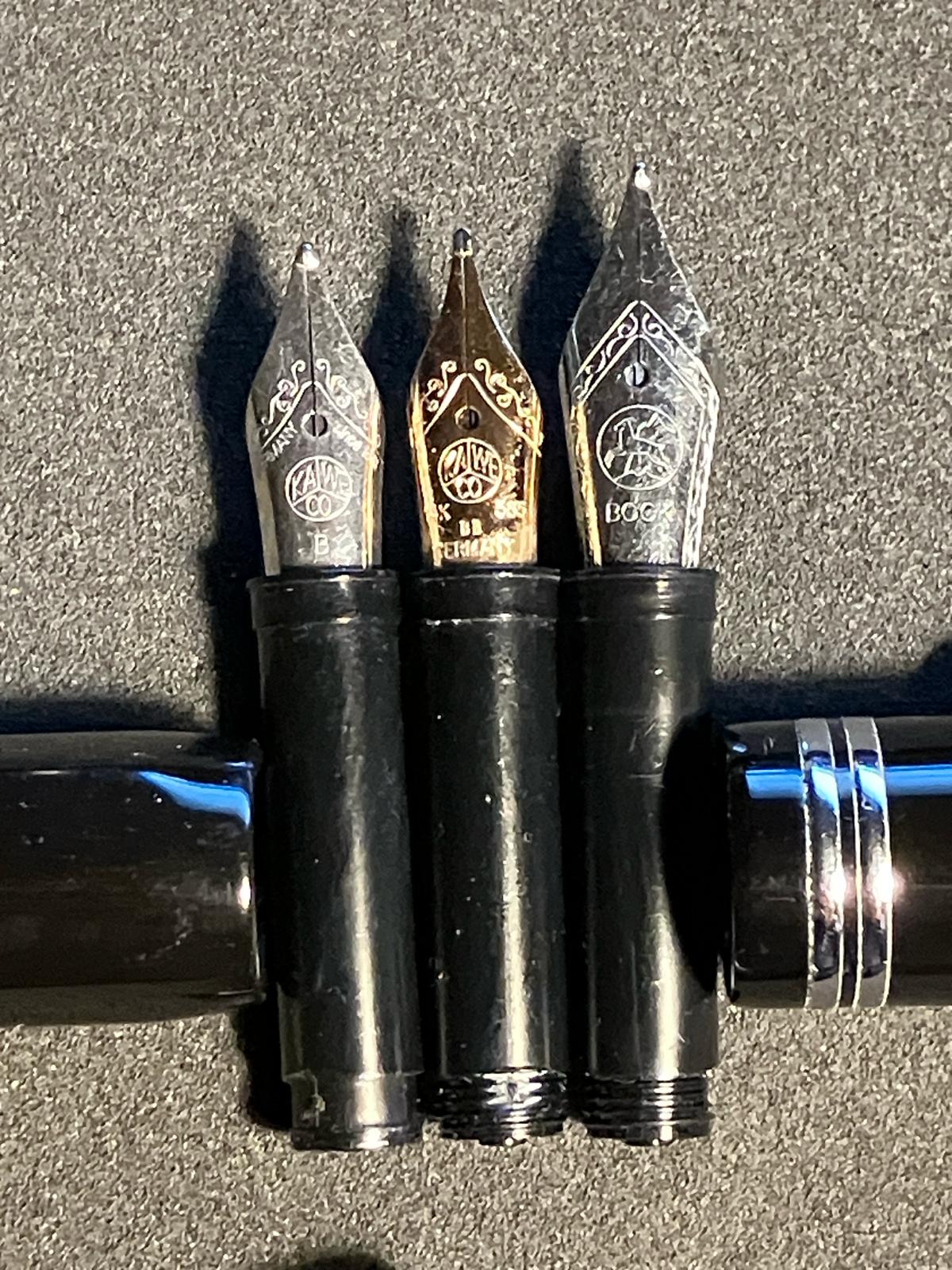 Entrambe montano un pennino size 5 marcato Kaweco, che in realtà è un 060 Bock rebadged (e come vedi hanno il collare che si avvita).