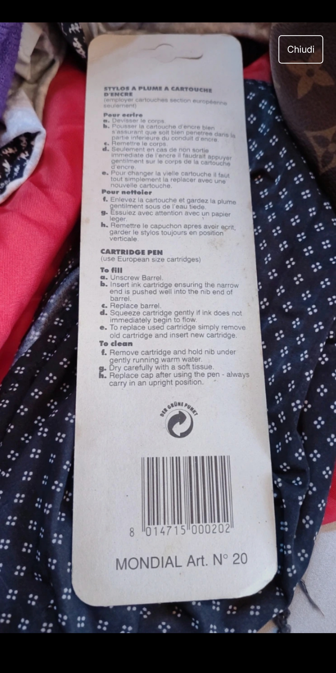 Si chiama Handy, è di chiara ispirazione Waterman, e sul retro della confezione riporta "made in Italy".
