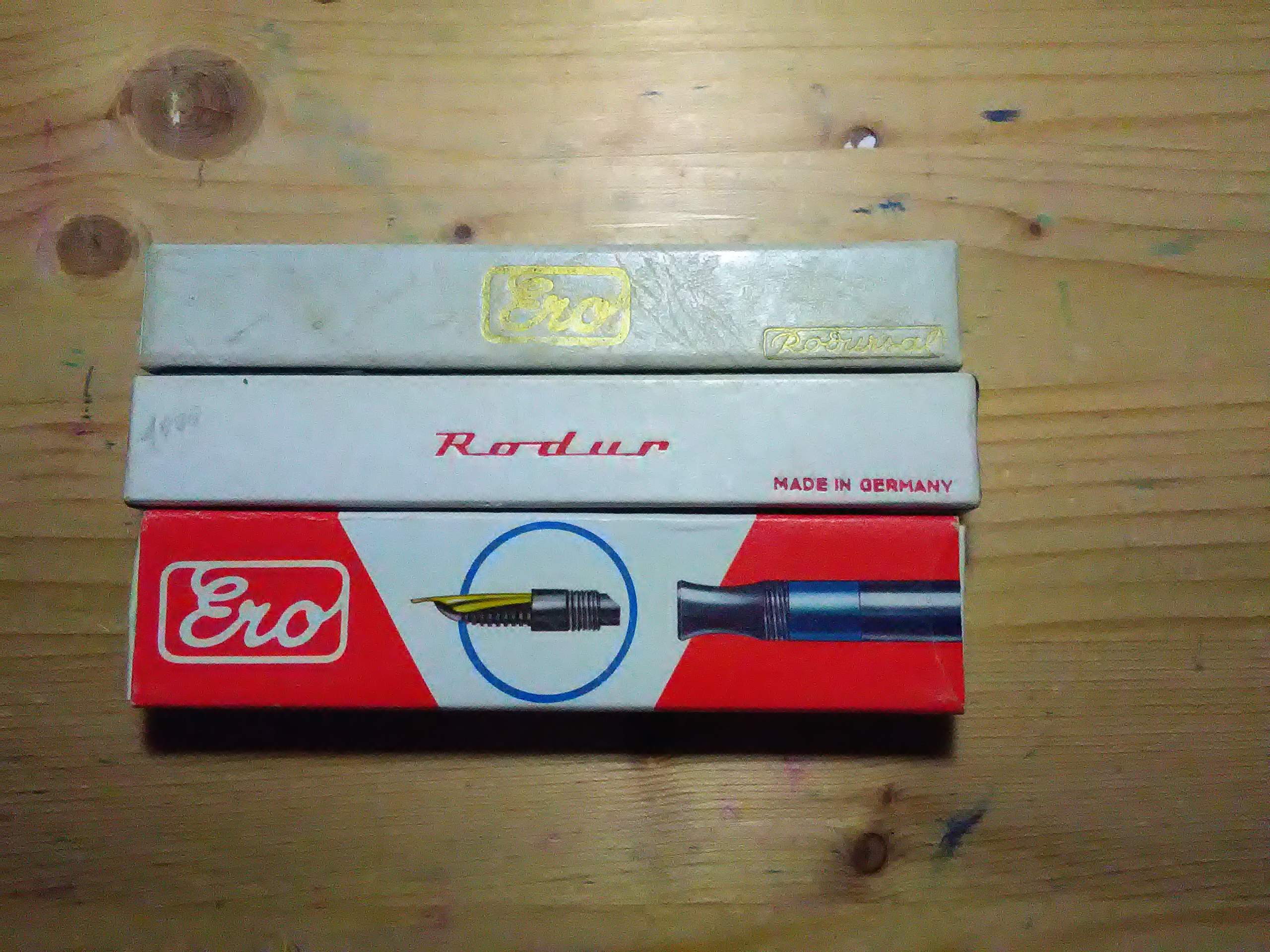 Uno ha perso quasi tutta la doratura, ma non è corroso, è un F abbondante, piuttosto cedevole, con la pallina di iridio al contrario, ovvero sulla parte superiore del pennino, per scrivere in reverse anche premendo come per la carta copiativa.