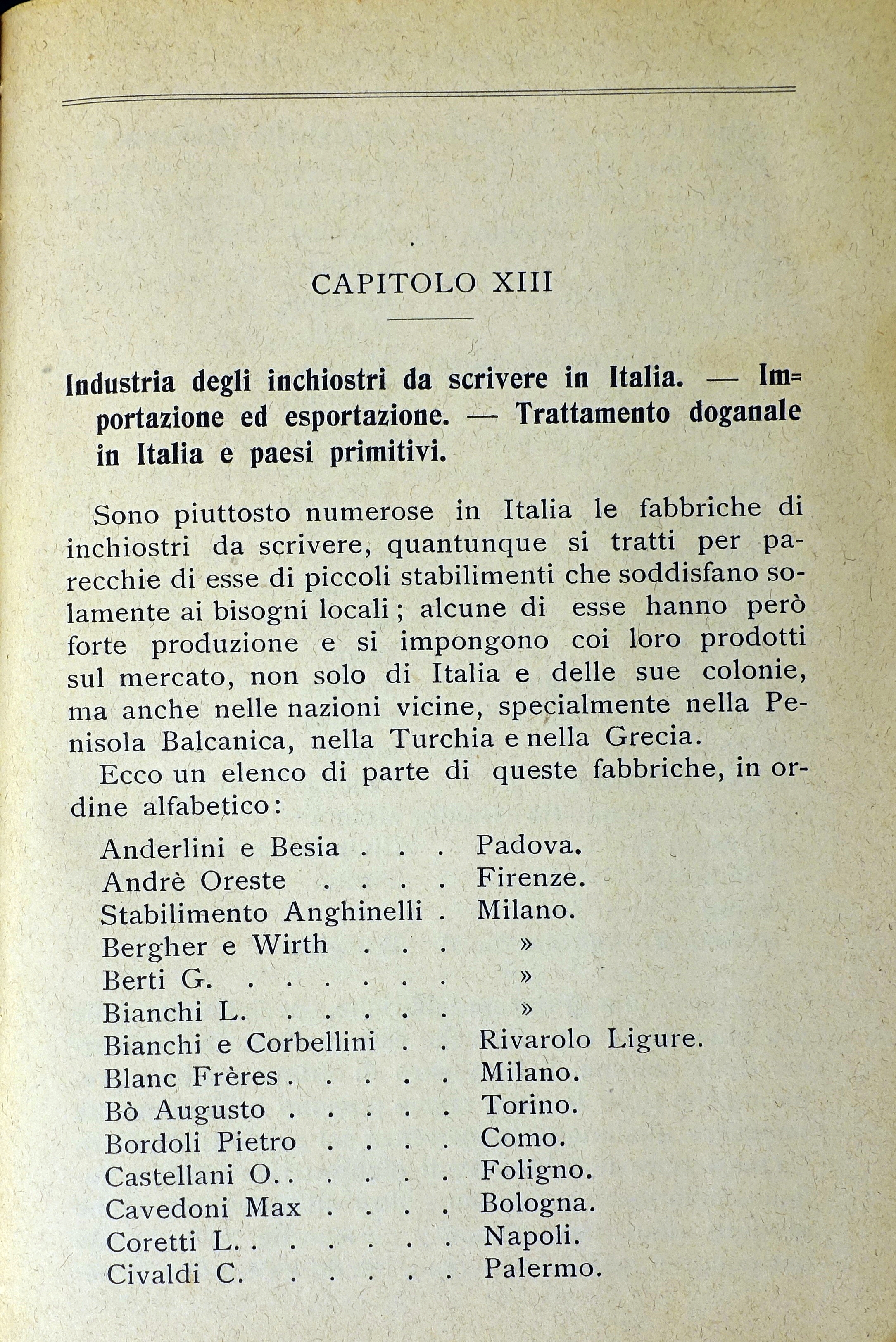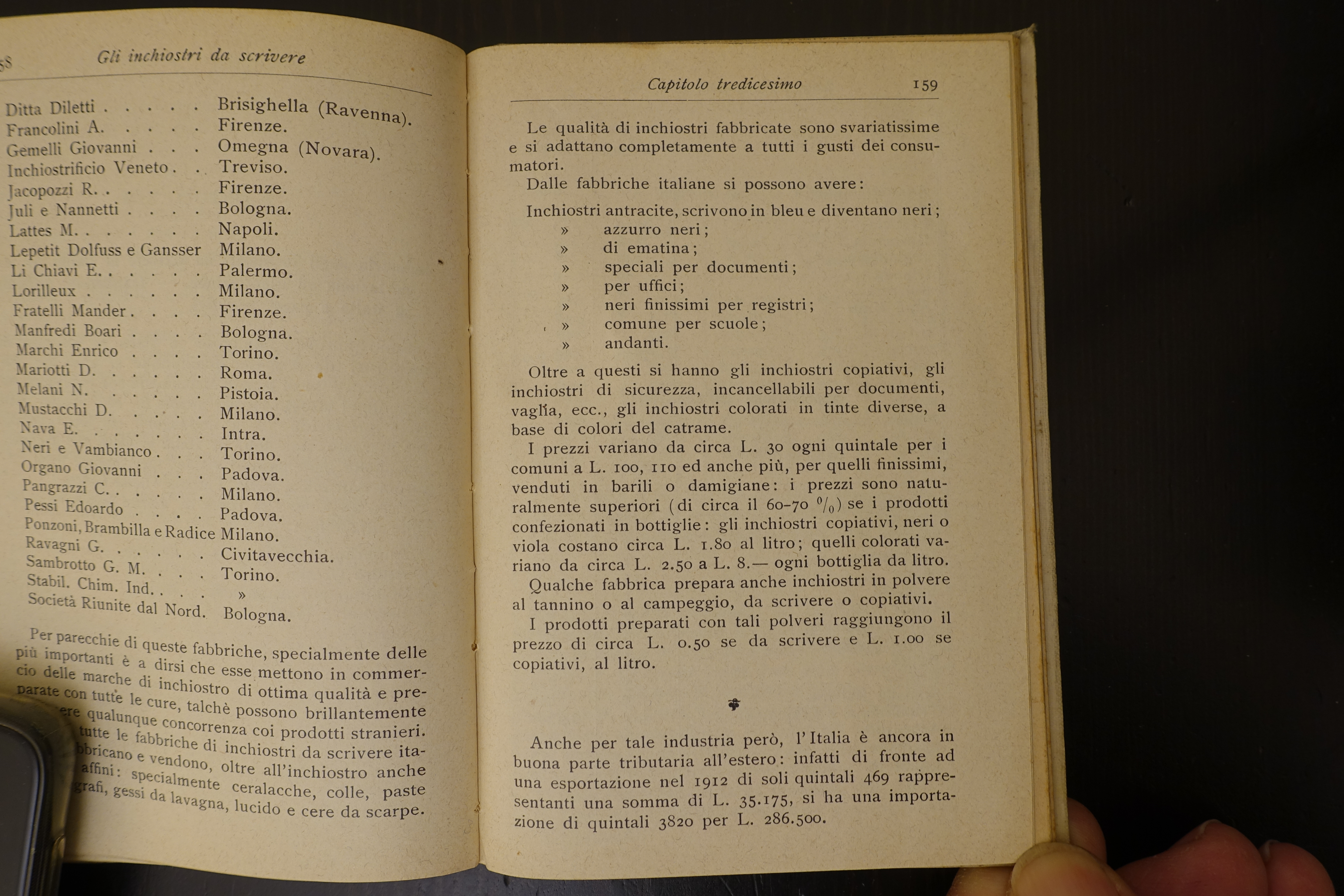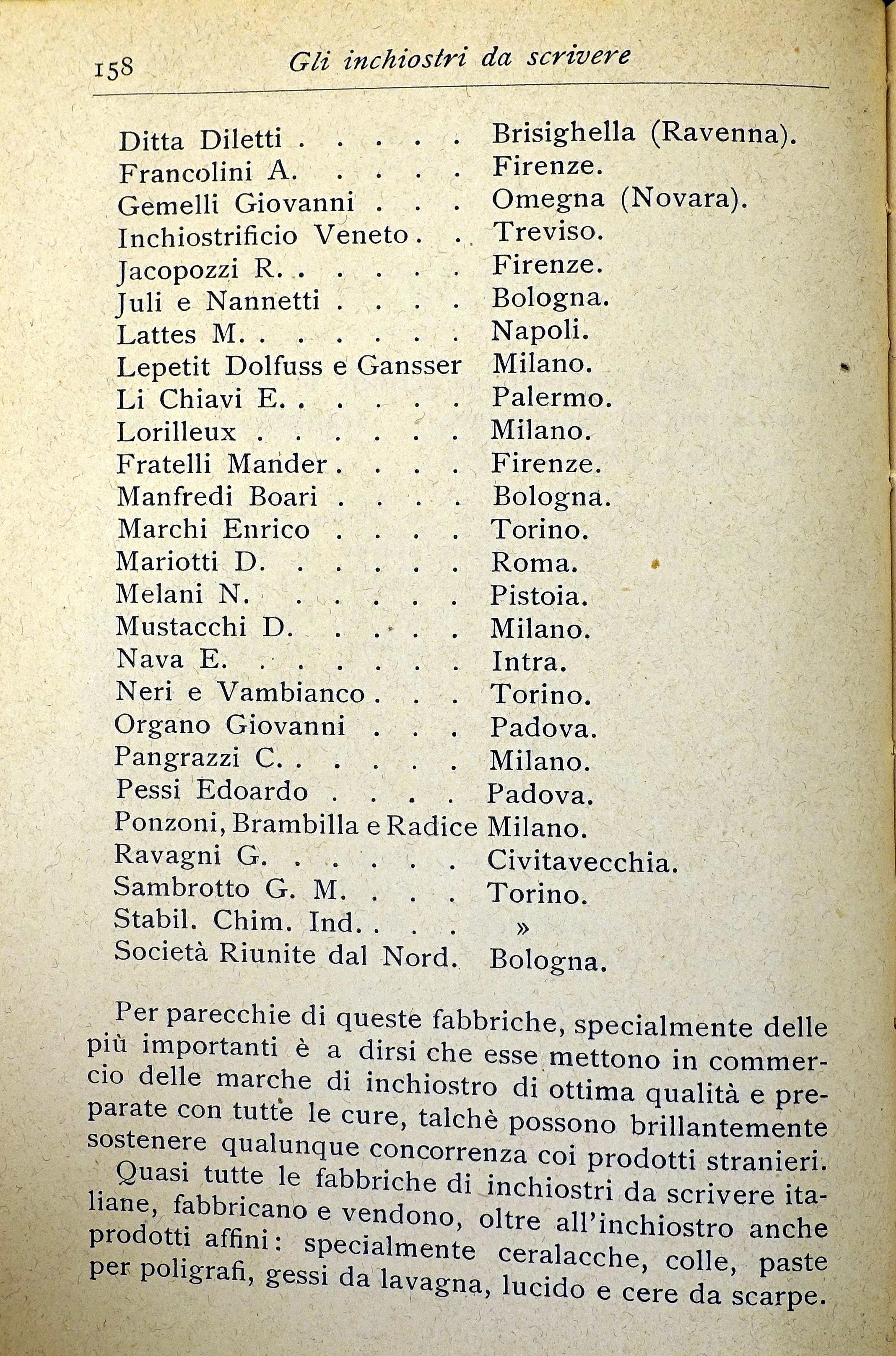 Non c'entra nulla con il post, ma nei primi anni del 900 tra le industrie Italiane che producevano inchiostri, non figurano marchi che producessero penne, dopo il 1915 non saprei... ;)