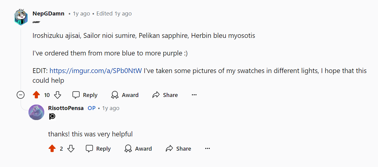 Sì sì, anche la lavanda esiste viola e rosa ma non mi aspetto che un inchiostro che si chiama "Lavanda" - da parte di un unico produttore - a volte lo si trova rosa e a volte viola a seconda delle stagioni :lol: