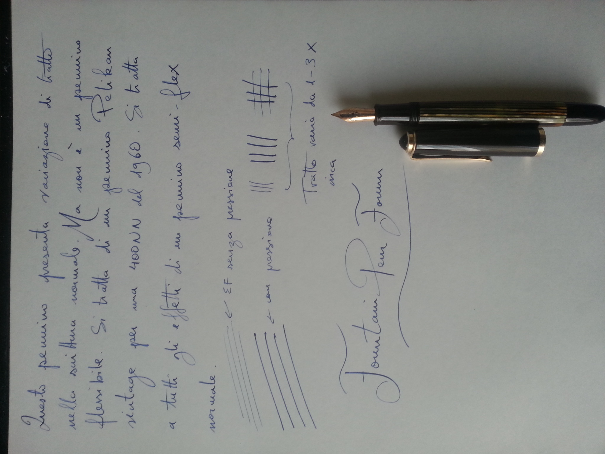 Il testo l'ho scritto nello stesso modo in cui prenderei degli appunti (ie non mi seduto con calma a fare ghirigori calligrafici). Il pennino è un extrafine vintage pelikan.