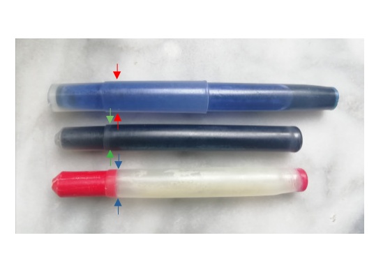 A parte la Flash non ho altre penne Waterman che utilizzano i "vecchi" standard (nelle le altre che ho vanno bene le cartucce e i converter attuali), per cui non ho di queste cartucce... Sarebbe utile conoscere i diametri dei fusti subito al di sopra del puntale di innesto, come in figura: