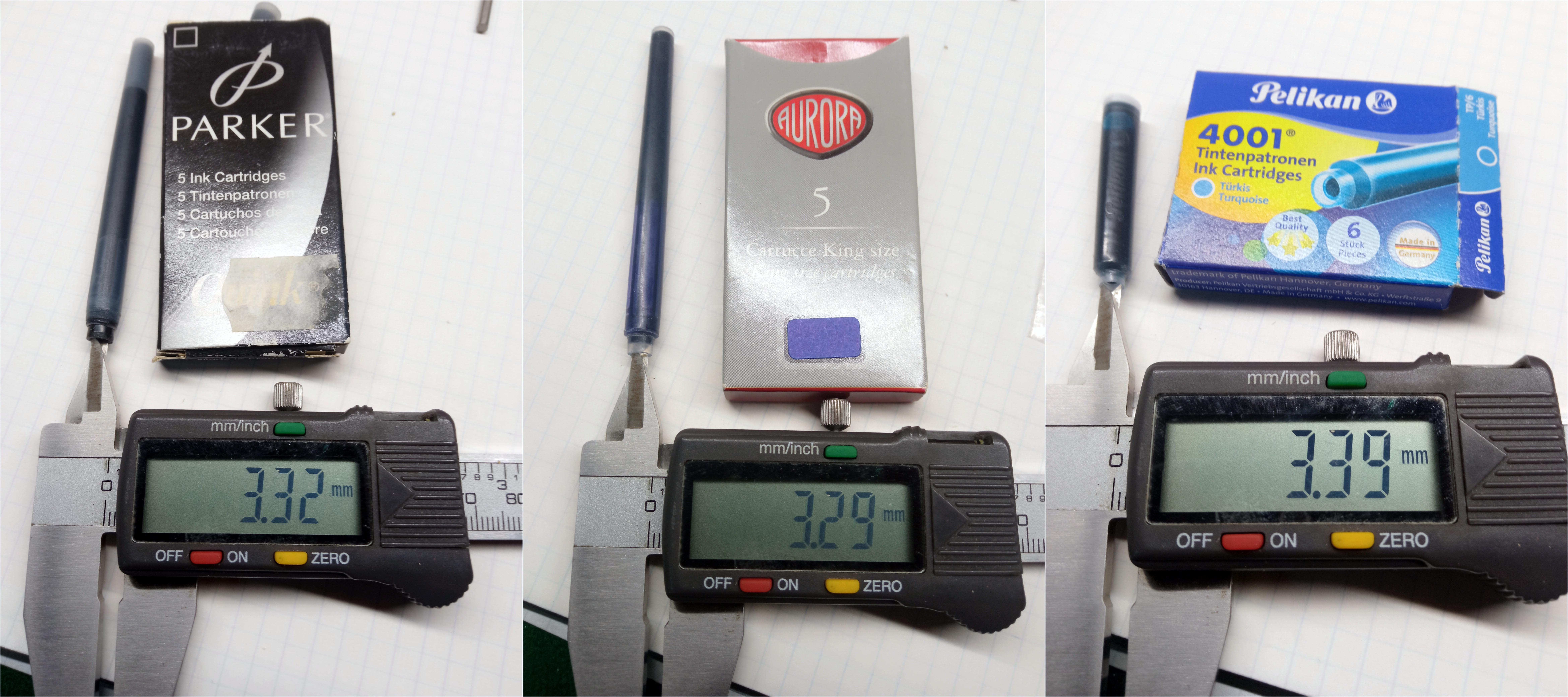 Il foro di imbocco di Aurora/Parker/Lamy è 3,3 come le Pelikan e Waterman moderne?