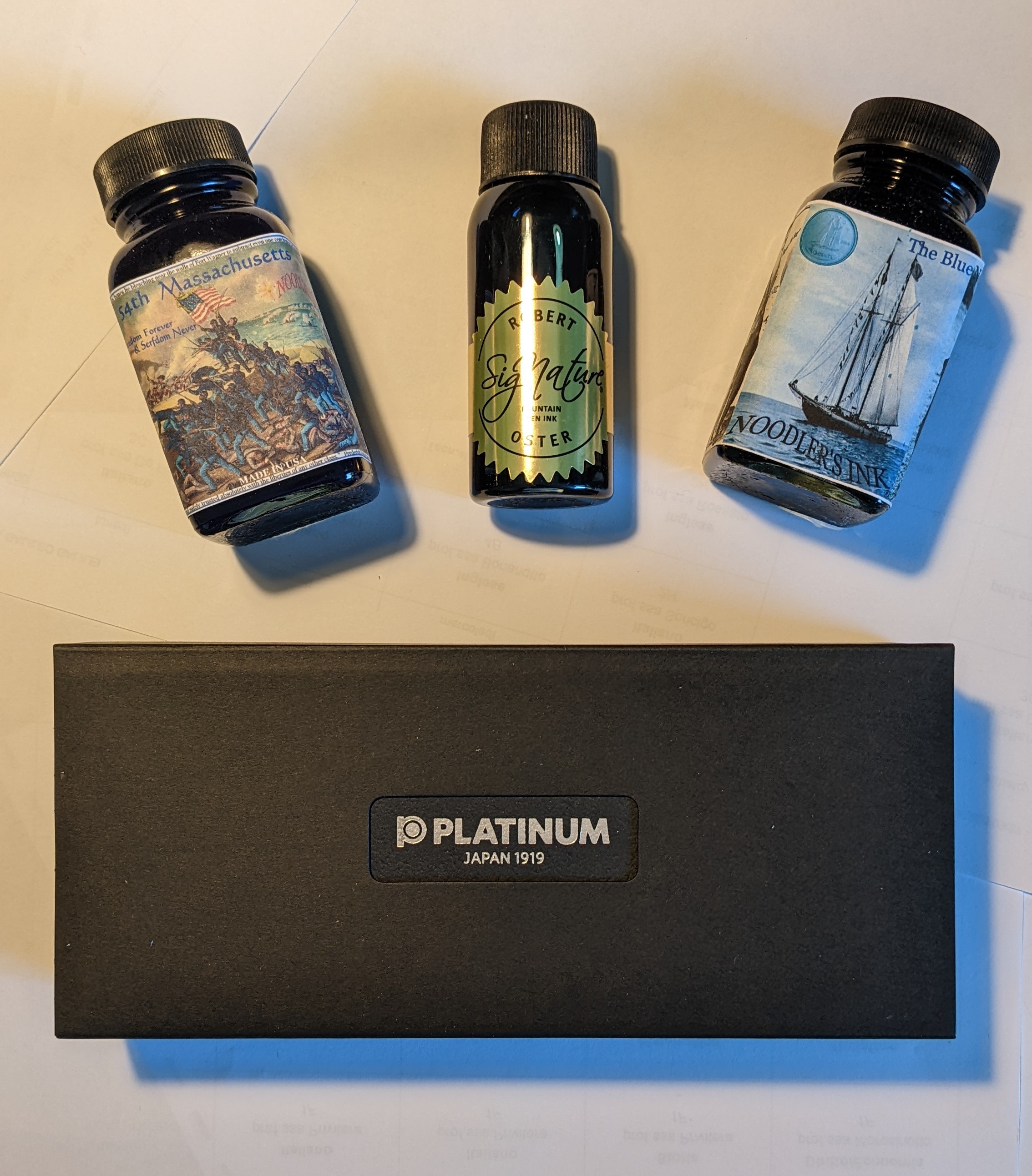 Tre inchiostri, qualche cartuccia, un converter Platinum e la Balance.