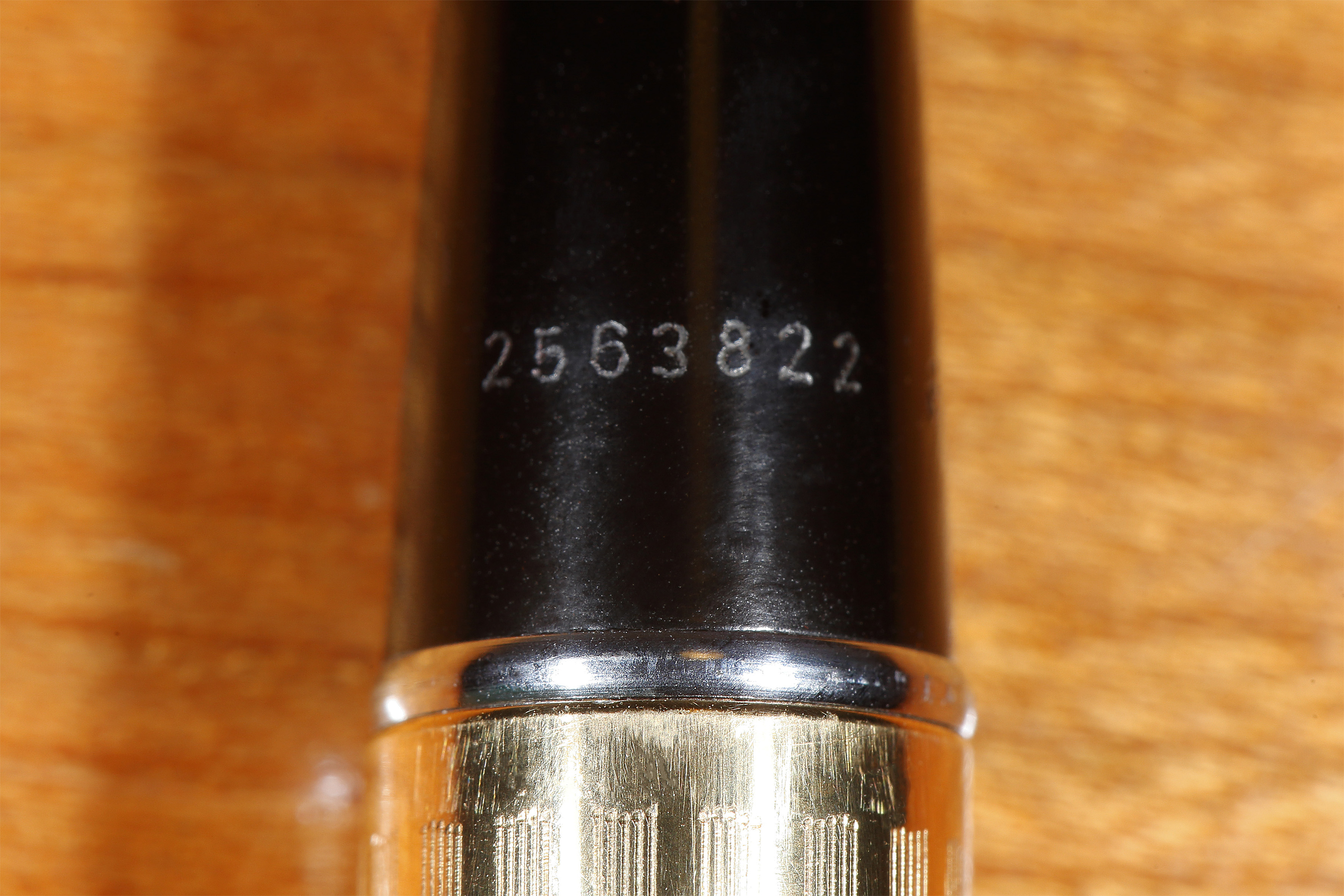 Ben visibile la finestrella rigata, per la verifica del livello d’inchiostro, ed ancora molto ben leggibile il numero di matricola: 1671511. Il pennino d’oro a 14 carati è ben molleggiato, anche se non flessibile, ed il flusso d’inchiostro è generoso, anche quando si usa il Pelikan 4001 nero, notoriamente poco tensioattivo.