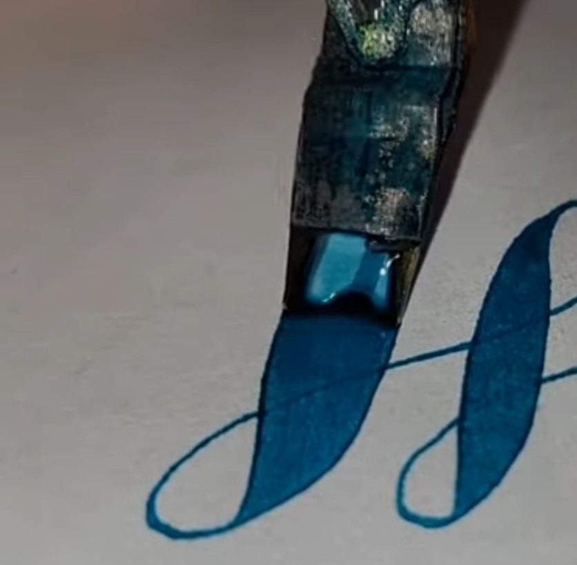 Notches here will cause the front of the nib to lift off the feeder more easily, but it does not matter as the overfeed will do all the work. In fact, I cut the front section off my feeders as they are not necessary and sometimes make contact with the page during flex. Even without the front, we can achieve 6mm+ of flex with no railroading and instant drying of ink.