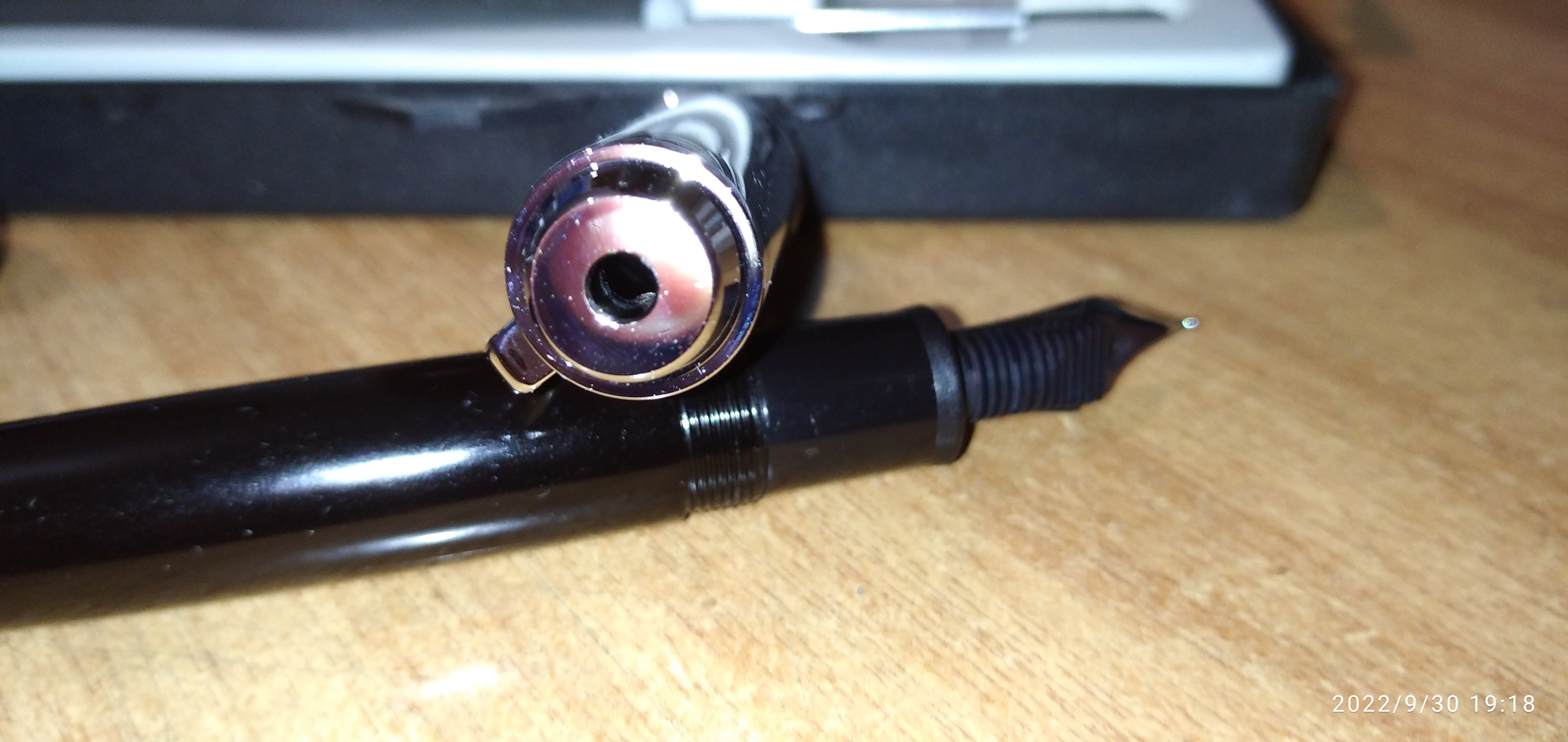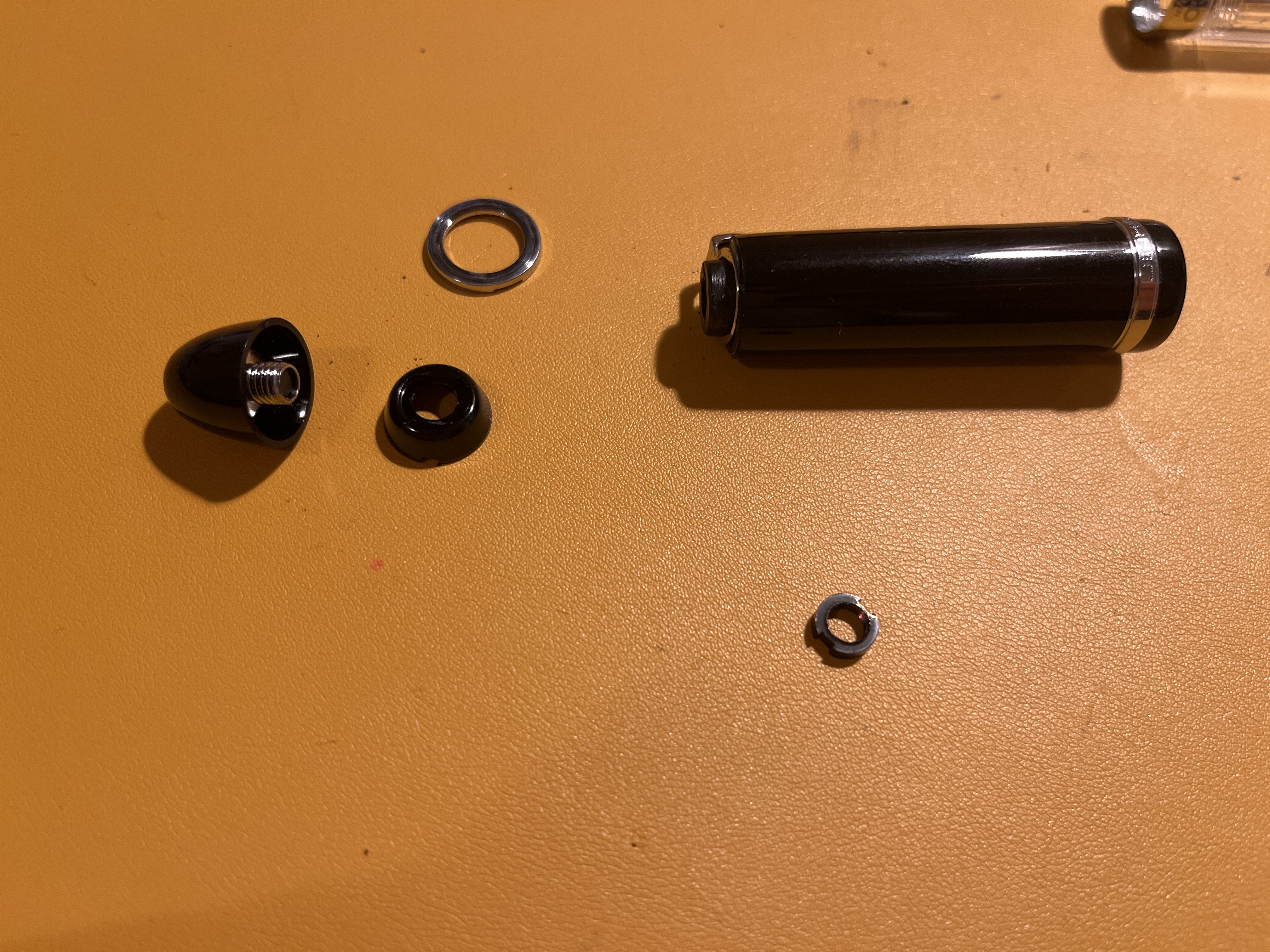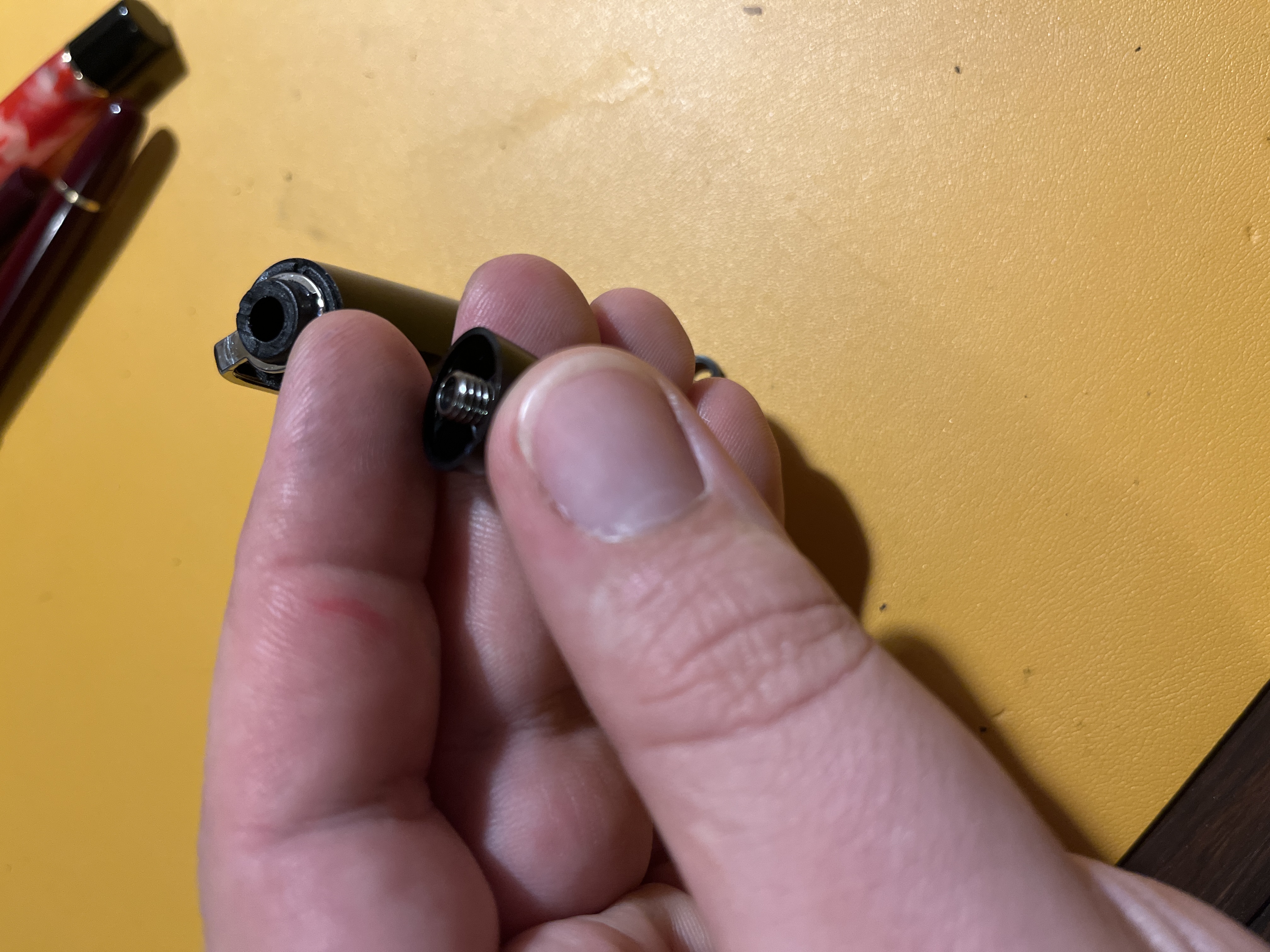 Ergo, il top era incollato. Infatti una volta "svitato" ho trovato residui bianchicci. Quindi in pratica ho rotto la penna. Ma poco male, per fortuna ho a portata di mano colla epodissica. Ad ogni modo la cosa mi ha fatto capire che non è possibile far toccare le due parti (bordo inferiore del top con l'anello del fermaglio)... Anche premendo, resta uno spazio vuoto.