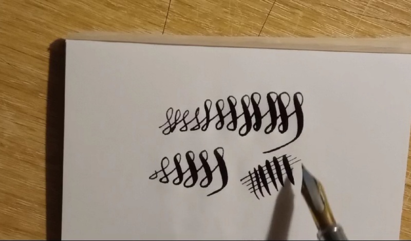 I can't say it's an improper phenomenon. It almost seems that before the nib tines subjected to pressure open, they undergo a slight twist. We were wondering if this is a normal phenomenon or if it's caused by excessive rigidity of the horizontal axis, the one supported by the lateral sides. And we were wondering if it would be appropriate to trim a few millimeters off the outer edge at the point of maximum expansion of the inner slit to eliminate the phenomenon. What do you think?