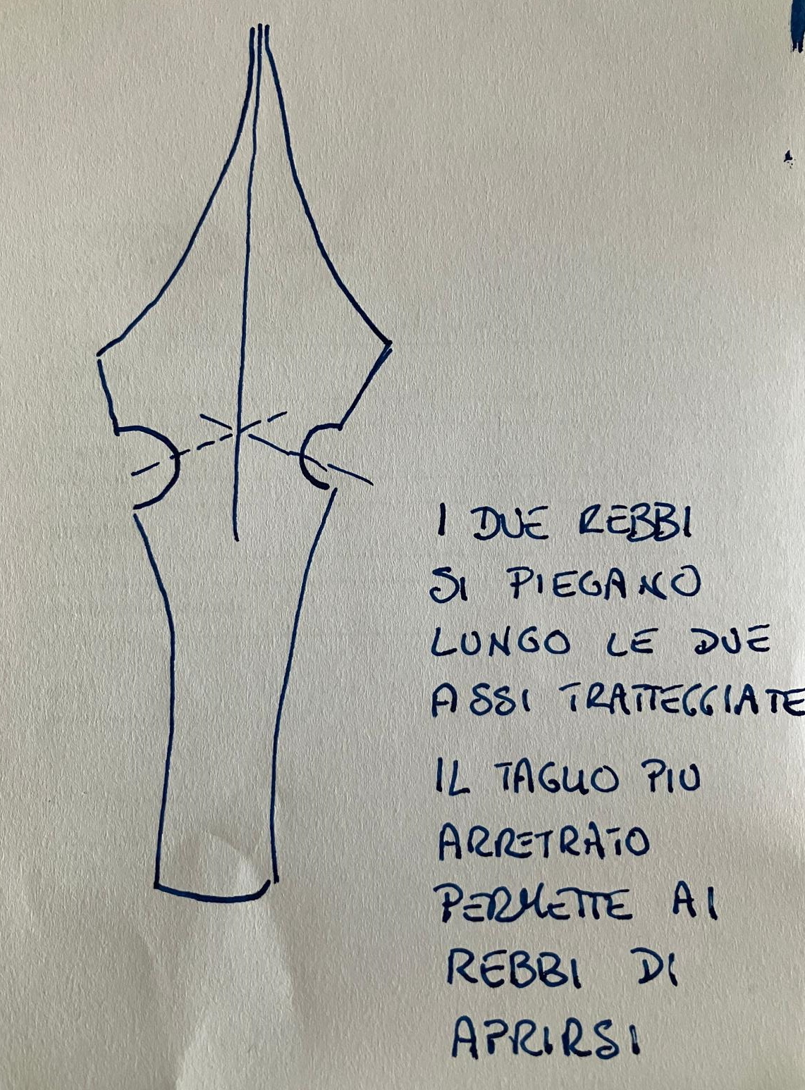 Geometricamente, la Linea di Piega (abbrevierò con LP) è il segmento più debole del rebbio, quindi quello che parte dal punto più arretrato della fenditura mediana e arriva perpendicolarmente al bordo esterno (il tratto più breve).