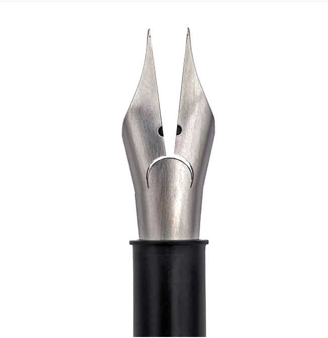 In my opinion, the cause is this: while in vintage flexible nibs made with a very elastic metal alloy only the upper part (the tip) of the nib flexed, in steel nibs (which are less elastic) to achieve appreciable line variation, it is necessary to shift the elastic moment from the upper part of the nib (the tip) to the lower part (the base). This results in a greater separation of the nib body from the feed. At this point, the ink flow is less subject to capillarity and is instead more influenced by gravity and the surface tension of the fluid. Practically, the nib acts in a manner similar to a dip pen. Therefore, it is not the larger diameter of the breather hole that increases air exchange, but rather the larger diameter of the breather hole and other modifications that produce a greater separation of the nib body from the feed.