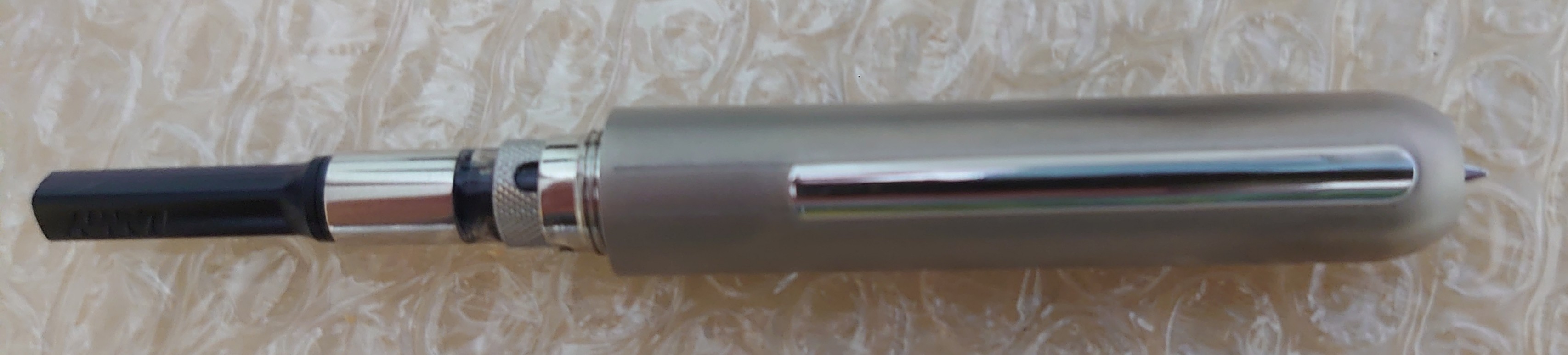 ho anche deciso di correre il rischio prendendo il pennino spaiato rispetto alla penna e devo dire che il contrasto con il corpo marine Amber con le finiture dorate ed il pennino cromato è stupendo dal vivo.