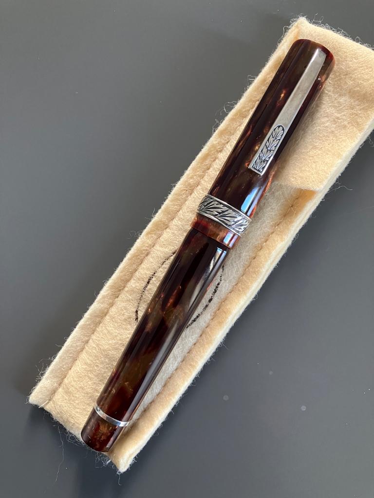 la penna è in celluloide color ambra (Stipula ha fatto anche la Etruria in questo materiale)