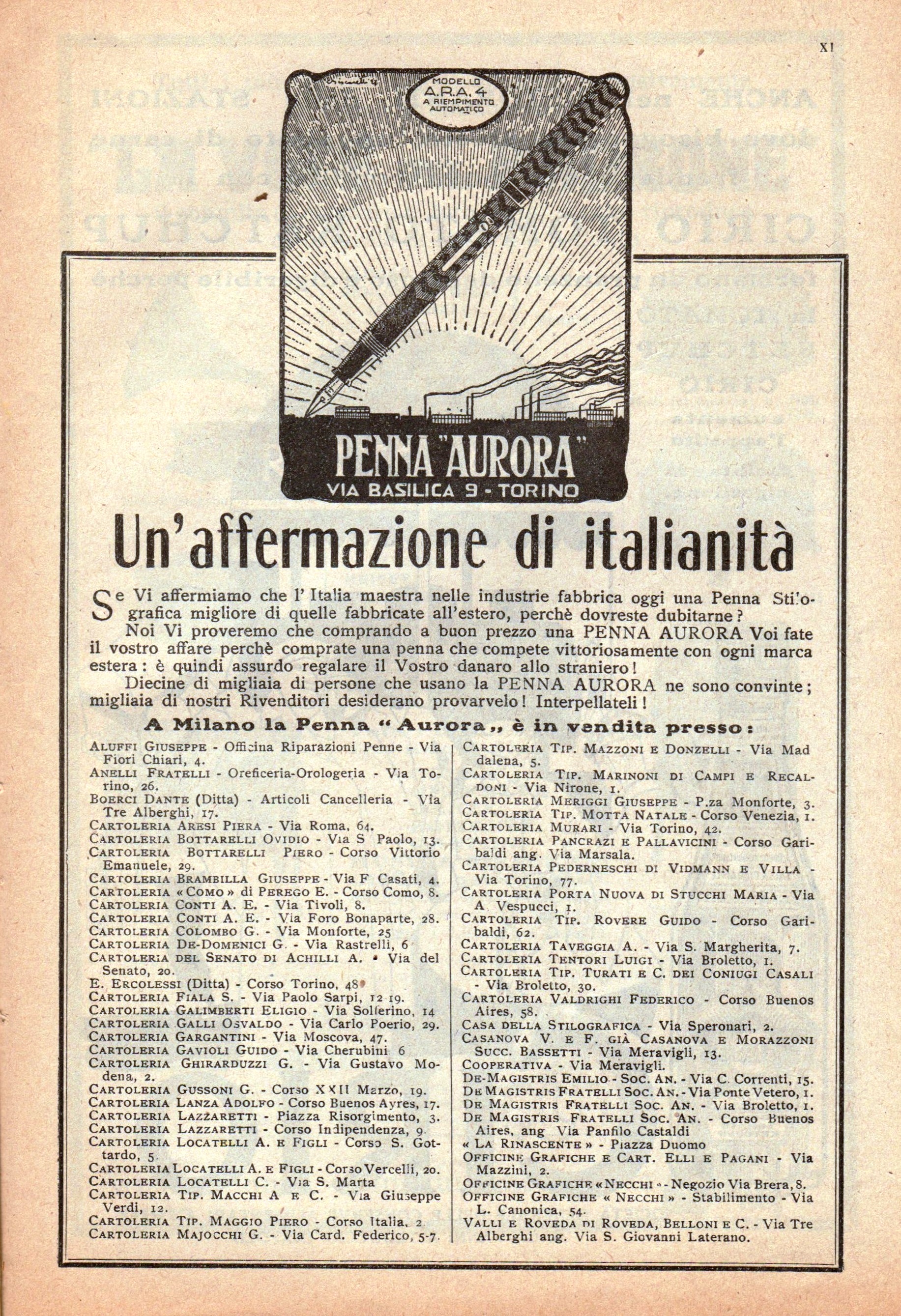 39. AURORA -A.R.A.4 e Rivenditori a Milano. 1926-05-01 - La Lettura - Anno XXVI - N.5 - pag.XI.jpg
