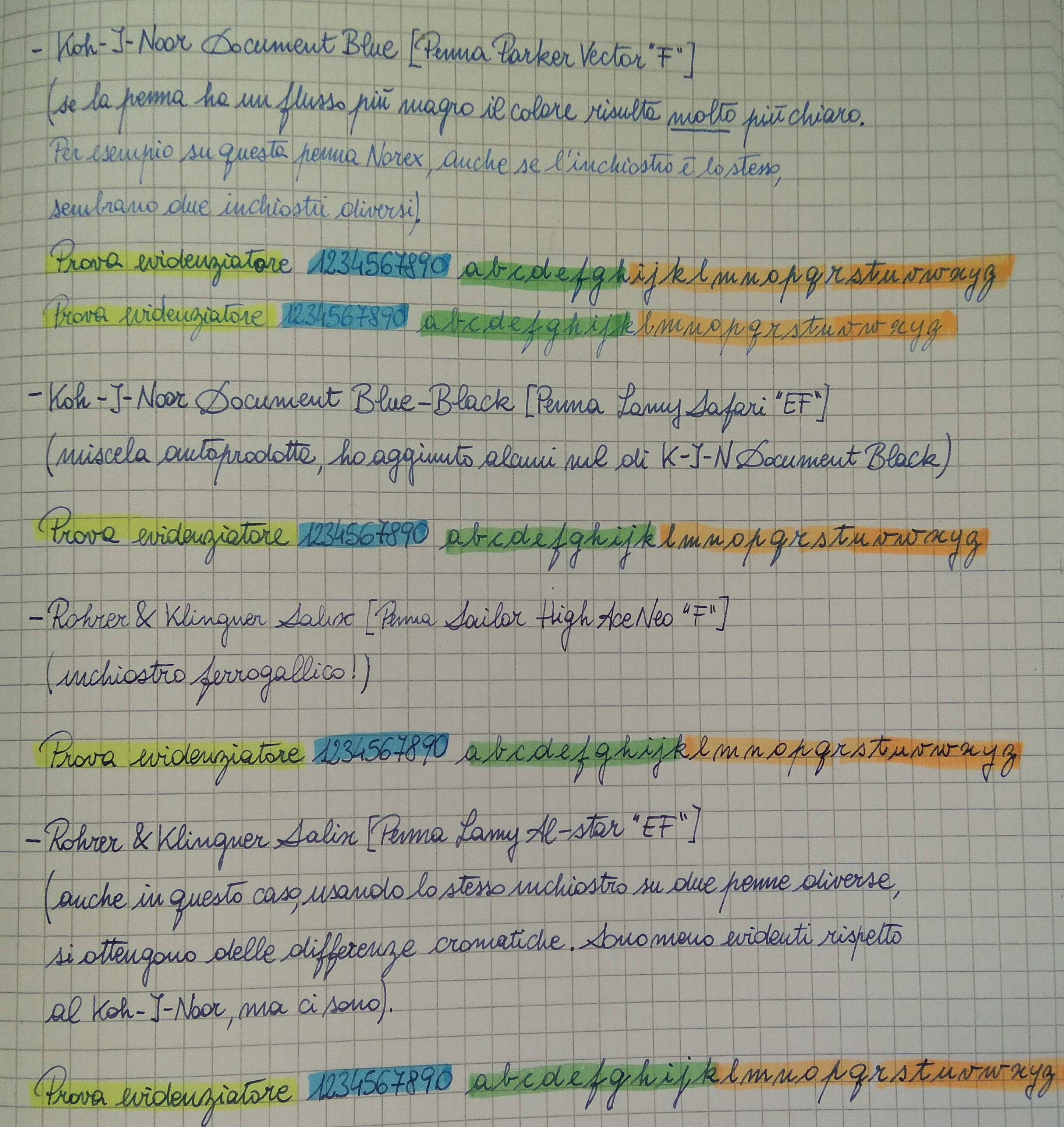 Ciao,Harwen ha scritto: ↑mercoledì 15 novembre 2017, 10:53No la penna non era stata mai lavata, oggi dovrebbe arrivarmi un'online air, pennino F, quindi lo proverò anche su questa penna, ma sono più che certa che la situazione rimarrà invariata. Per matite evidenziatori intendi dei comuni colori a matita o ti riferisci ad altro?Orlandoemme ha scritto: ↑martedì 14 novembre 2017, 13:51 Ciao,
