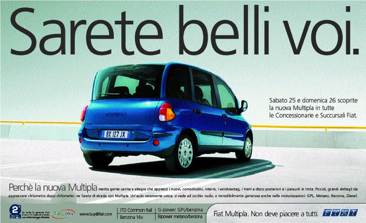 Chissà perchè mi è tornata in mente questa intelligente, e (auto)ironica, pubblicità della FIAT: