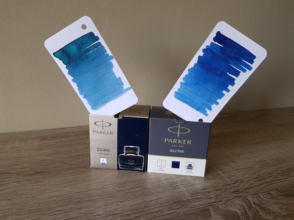 Io ho il Blue Black nuovo in boccetta e il blu in cartuccia (suppongo nuovo, perchè la confezione somiglia a quella della boccetta). Per i pennini fini che uso io, bocciati entrambi. Anche se c'è da dire, che ormai mi sono spostato verso gli inchiostri molto scuri, quindi tutto il resto mi sembra slavato.