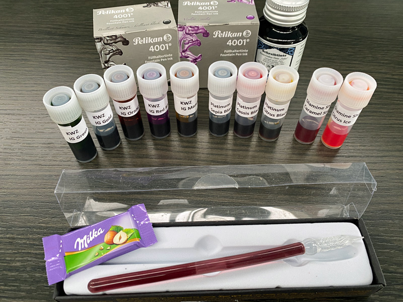 Dopo un primo utilizzo sporadico posso dire che il blu nero, come detto da altri, è più asciutto di altri inchiostri. Complice il pennino F della mia Aurora che è veramente sottile si traduce in un nero con sfumature blu che però mi piace parecchio e che lo rende utilizzabile anche su carte non propriamente di alta qualità