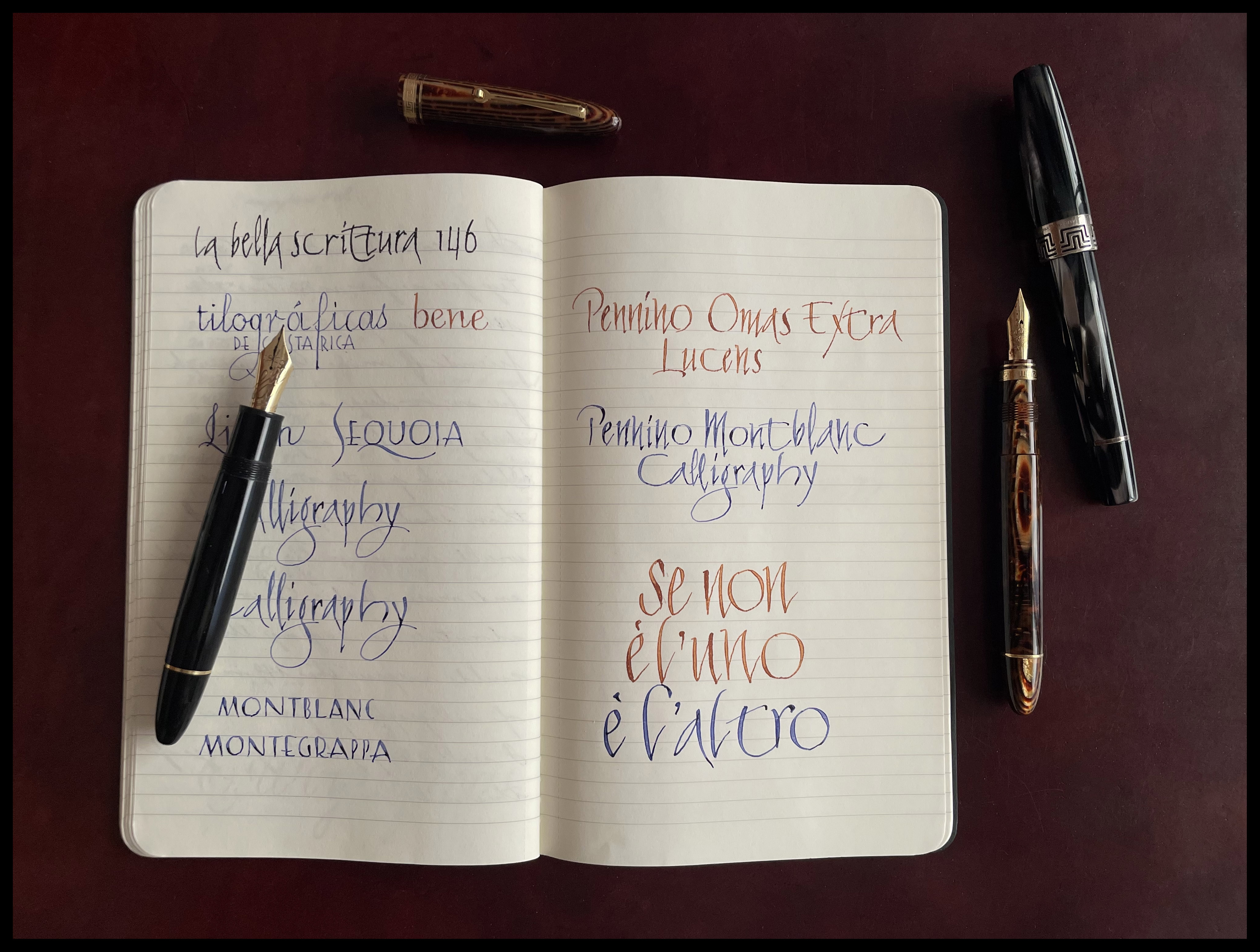 eccellente flessibilità e una elasticità appena subottimale - il mio Montblanc Calligraphy é uno di questi questi. Per questo, come lei ha ben notato, si presta altrettanto bene per la calligrafia come per la scrittura ordinaria".
