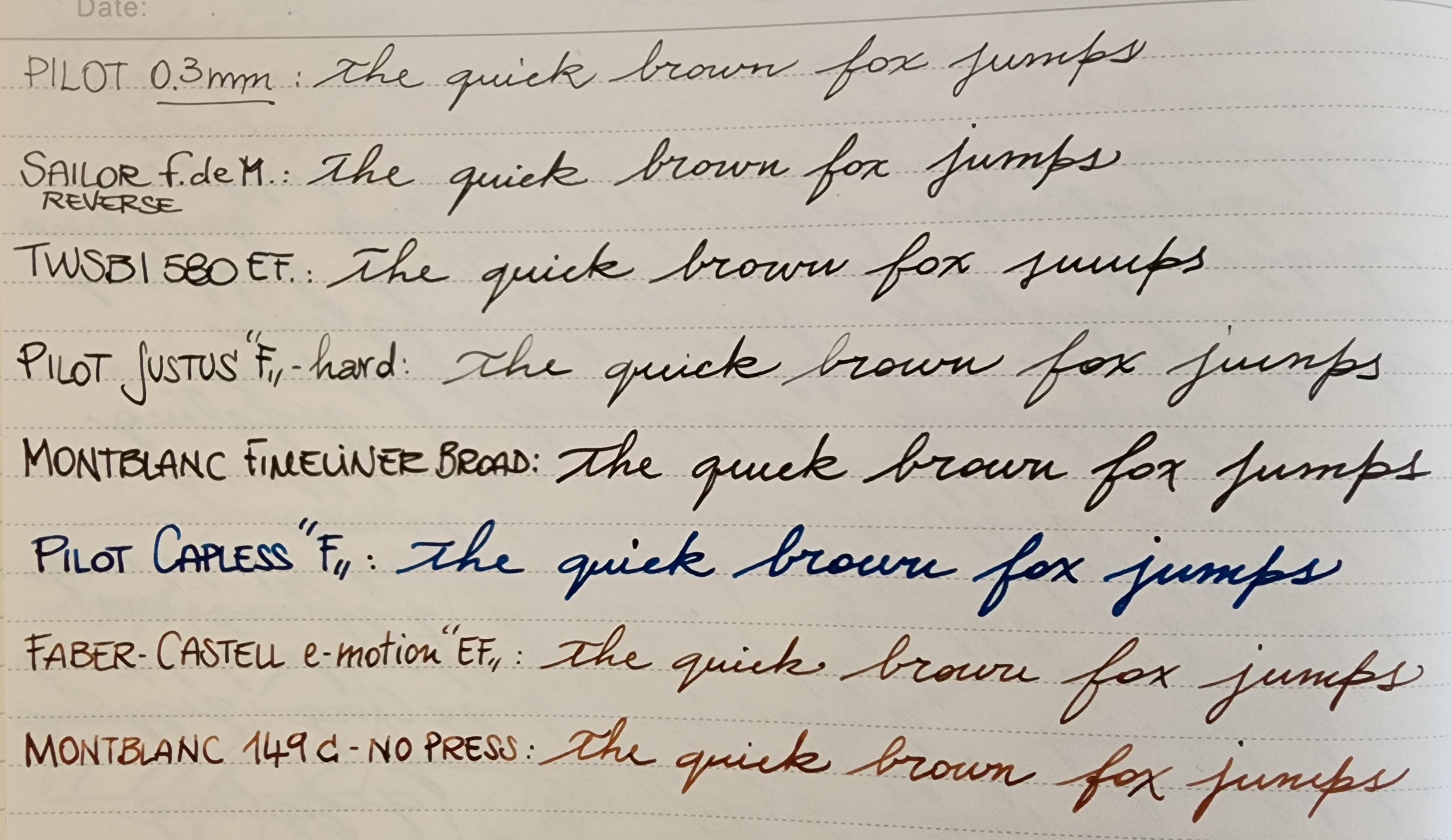 C'è anche da dire che ci possono essere differenze tra pennini della stessa casa, basta citare i pennini della Lamy Z50 EF, non ne ho uno che scriva uguale, per avere una coerenza di tratto li ho tutti cambiati con dei pennini presi dalla Cina. Parlo per la mia esperienza, che può benissimo essere smentita, tra la ECO in mio possesso e la Diamond 580 e la Diamond 580 AL, tutte EF, la ECO è leggermente più abbondante potrei quasi dire che siamo su un EF europeo.