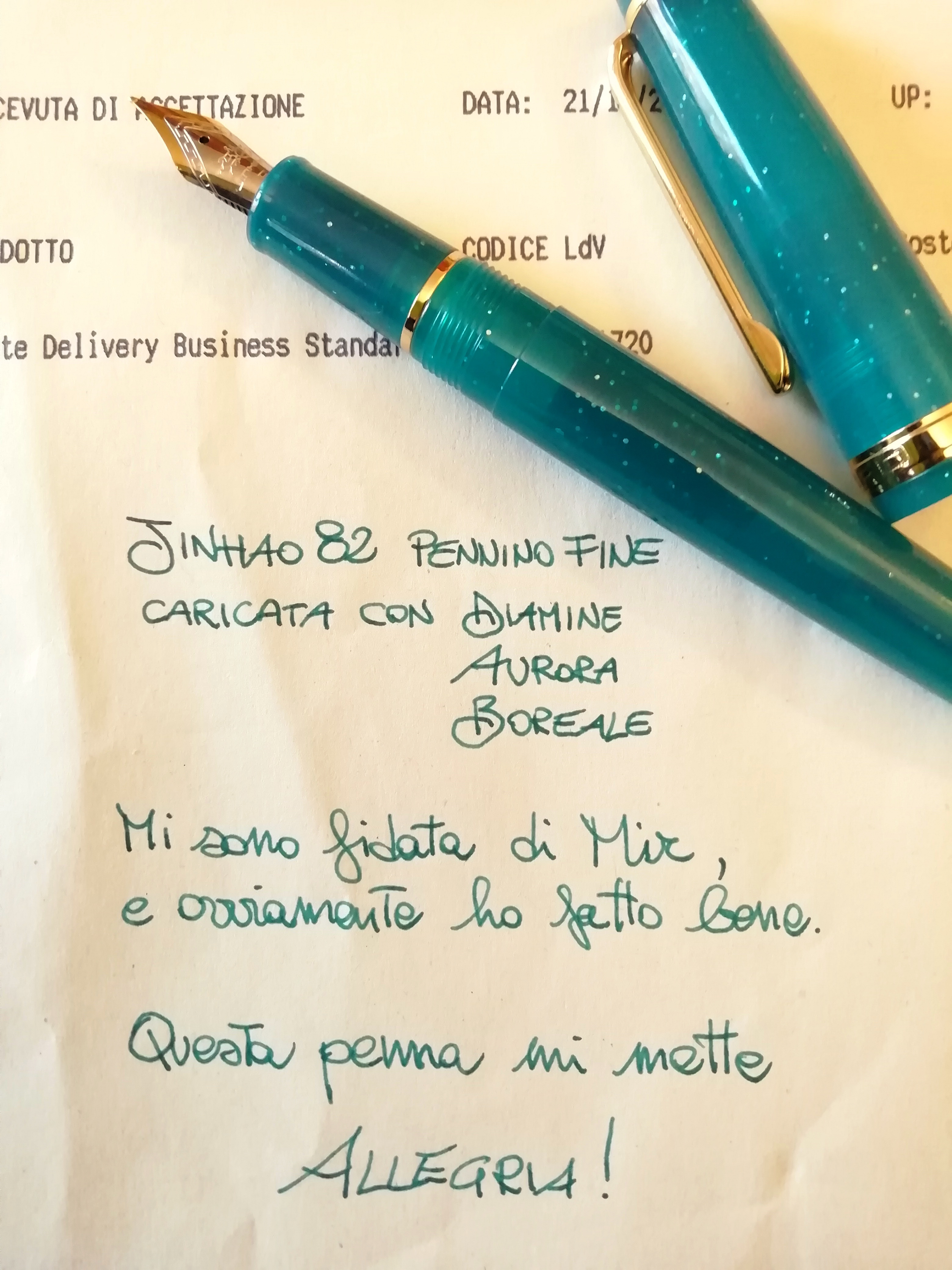 Scrive bene, il pennino scorre senza scivolare troppo ma senza quella strana sensazione di attrito che hanno spesso i pennini Jinhao (o avevano).