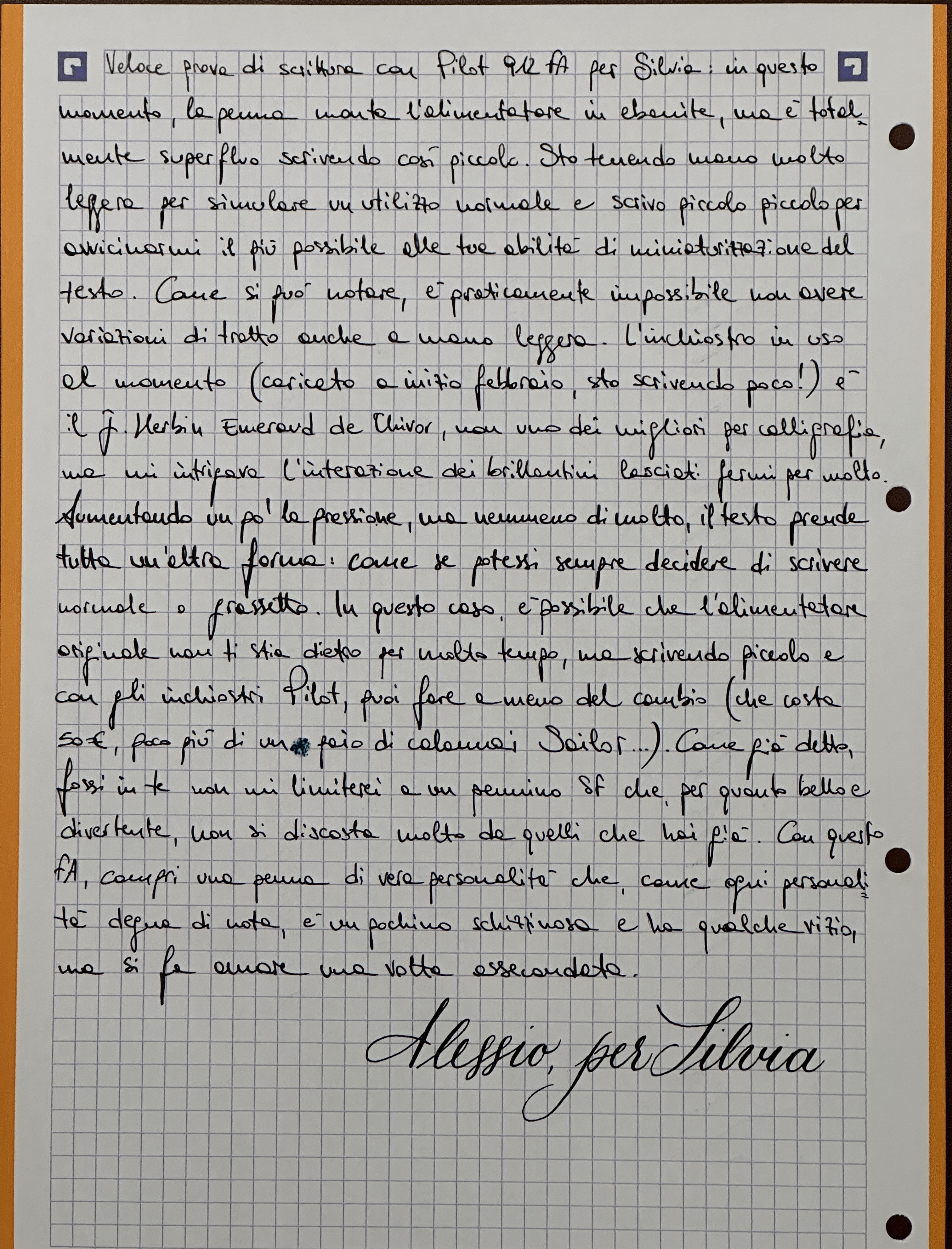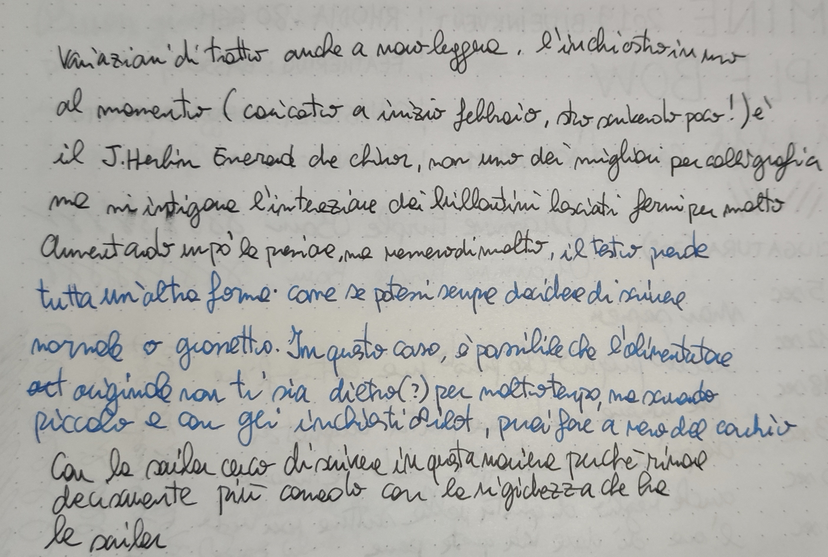 Con la penna pilot veniva ancora più anoressico della sailor, con i problemi che ti avevo elencato anche usando 5 inchiostri pilot diversi.