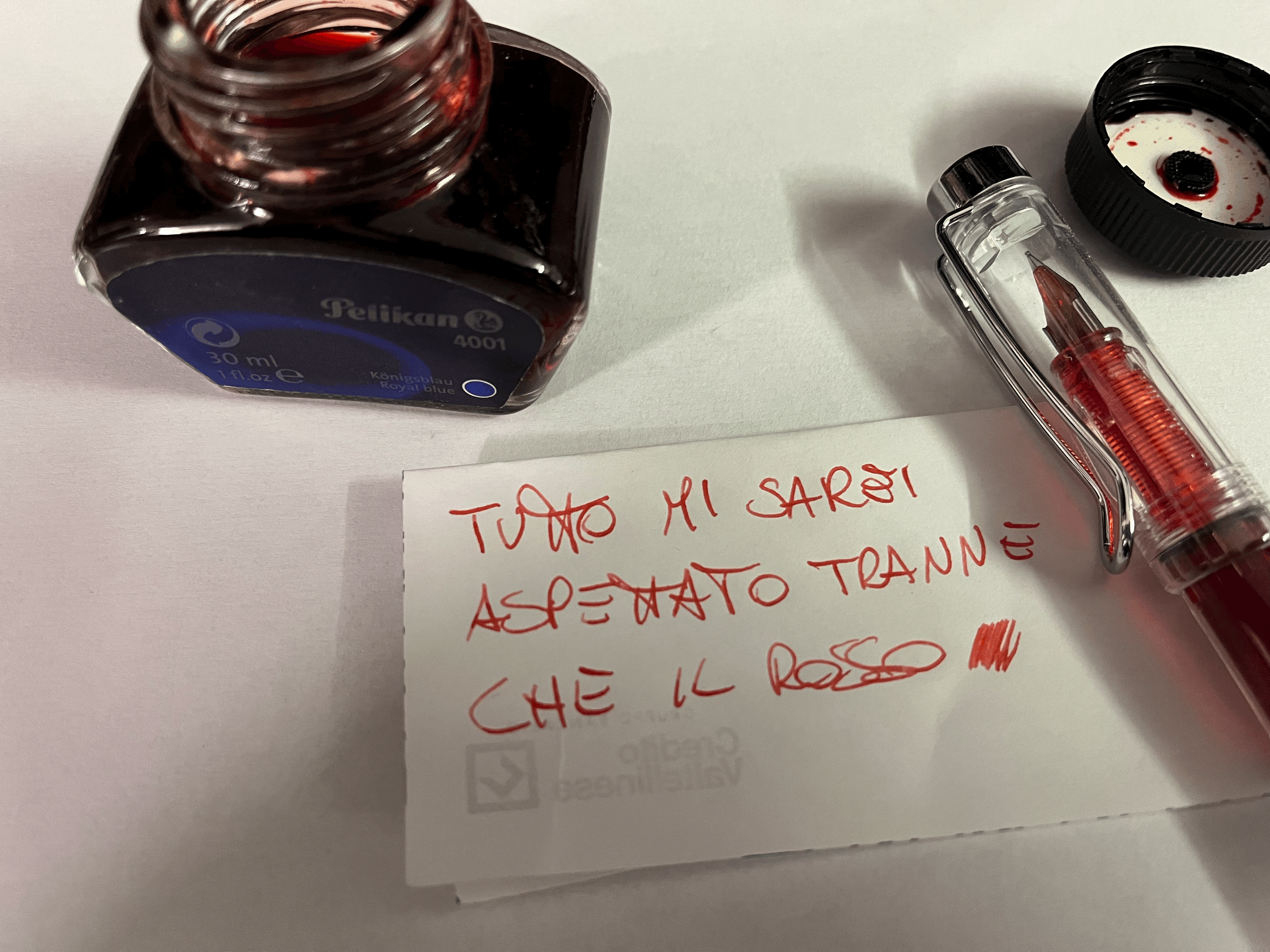 Ho messo un po' di acqua distillata con un po' di polverina magica in un calamaio Pelikan e ho agitato.