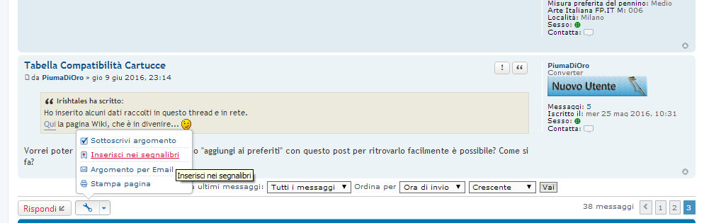 Vorrei poter salvare o fare qualcosa del tipo "aggiungi ai preferiti" con questo post per ritrovarlo facilmente è possibile? Come si fa?Irishtales ha scritto:Ho inserito alcuni dati raccolti in questo thread e in rete.