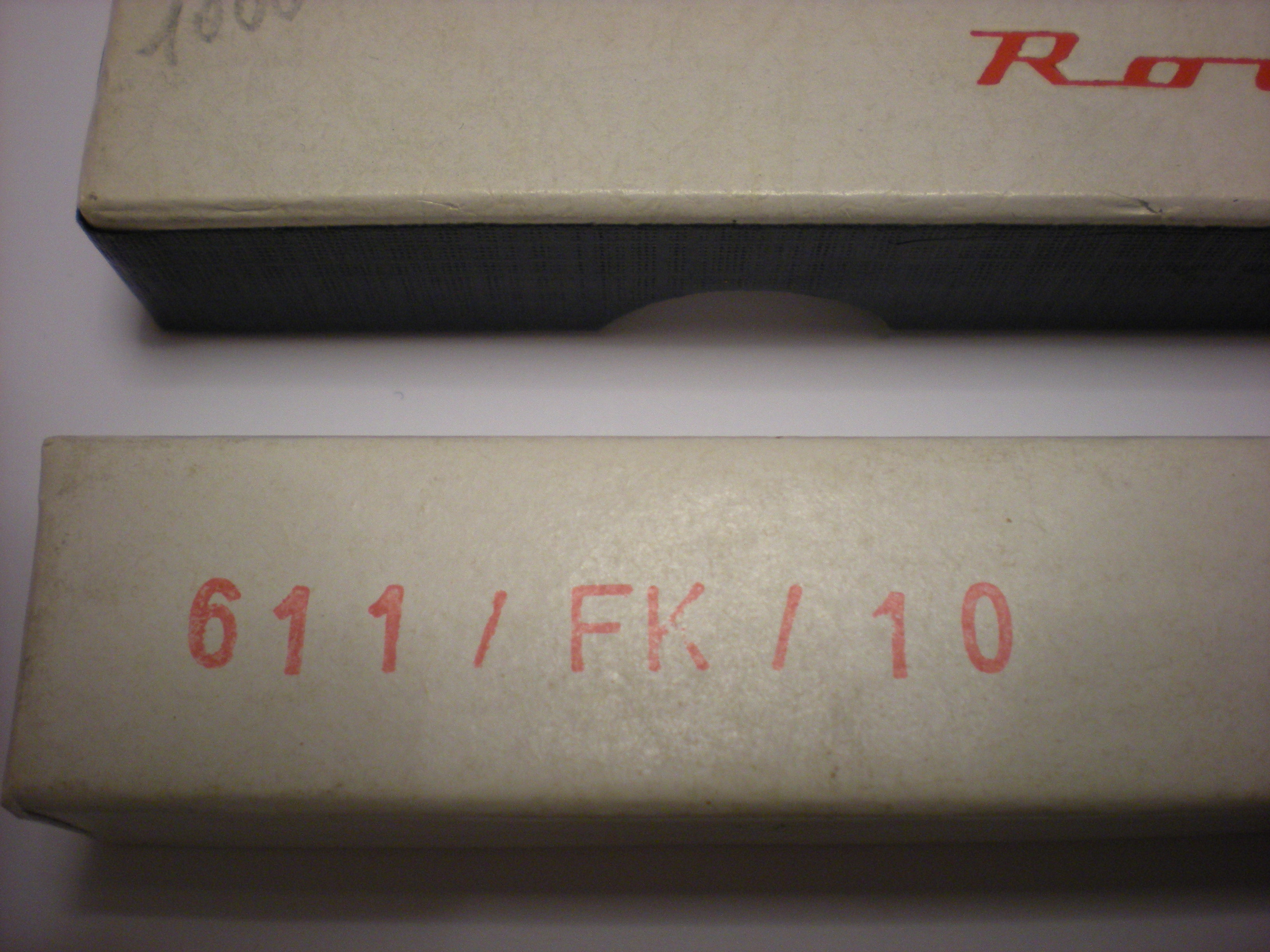 rimettendo a posto le scatoline, sul fondo di quella della Rodur, è certa solo la sigla FK (Fine Kugel), per gli altri numeri non ho idea