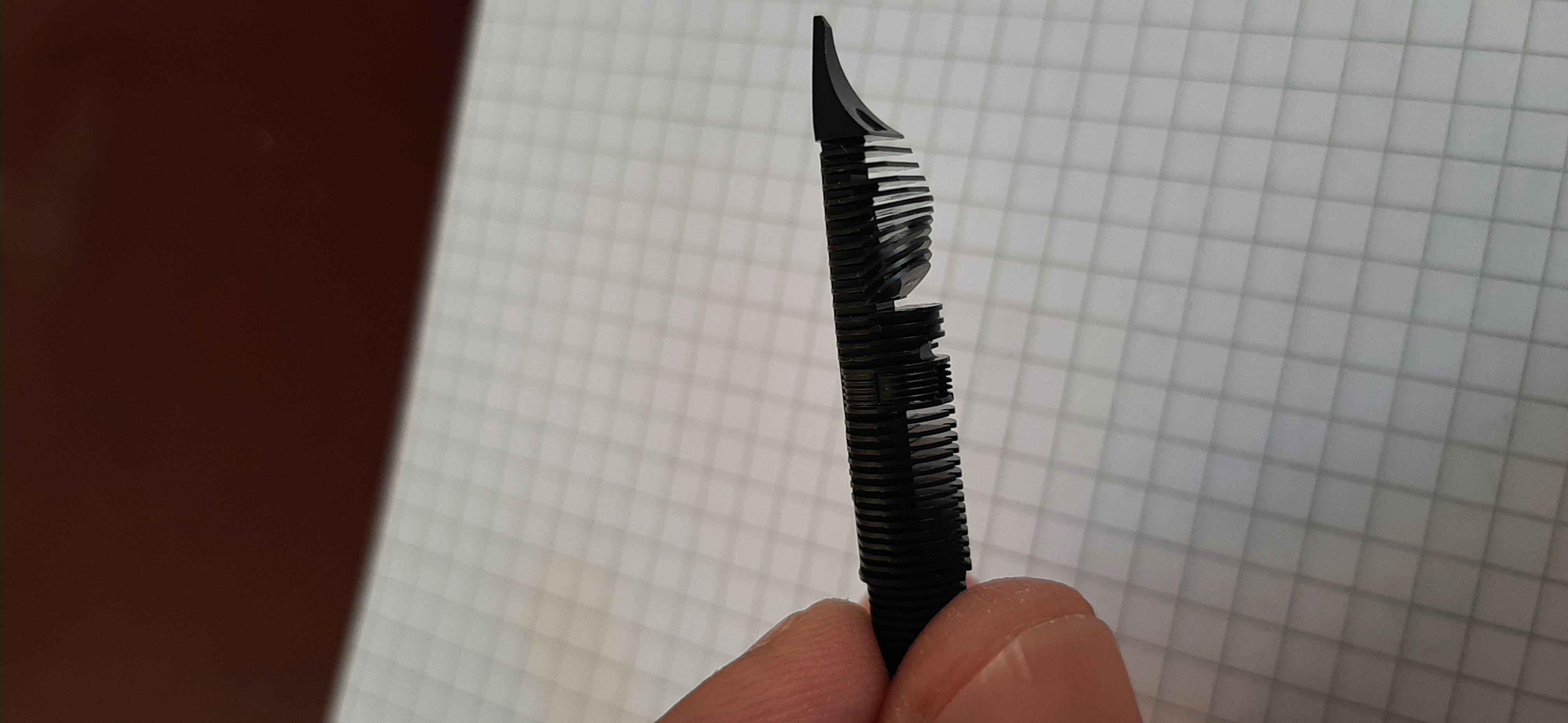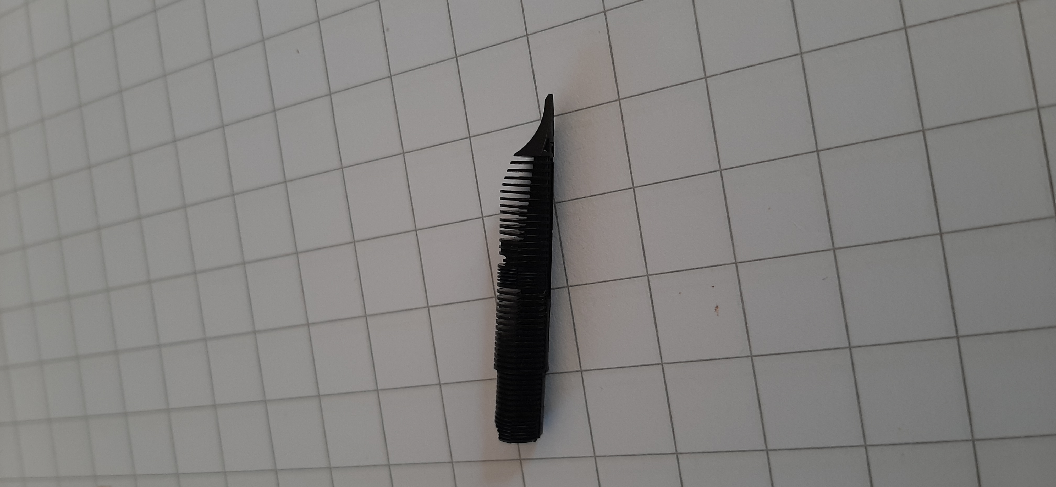 Sono passato alle maniere forti; smontato pennino ed inserita lamina ( i rebbi erano così serrati che il tentativo con la pellicola fotografica è risultato vano ed ho dovuto utilizzare la lamella dello spessimetro); facendomi coraggio (ovvero avendo perduto la pazienza e con conseguenti minori riguardi) sono riuscito a disassemblare il gruppo scrittura ( guardate che strane lamelle inclinate ha l'alimentatore - da quel che capito dovrebbe trattarsi di ebanite) e sottoporlo ad una abbondante insaponatura ( anche interna); secondo voi per quanto tempo dovrò tenere il pennino in trazione ? Una decina di giorni potrà bastare ?
