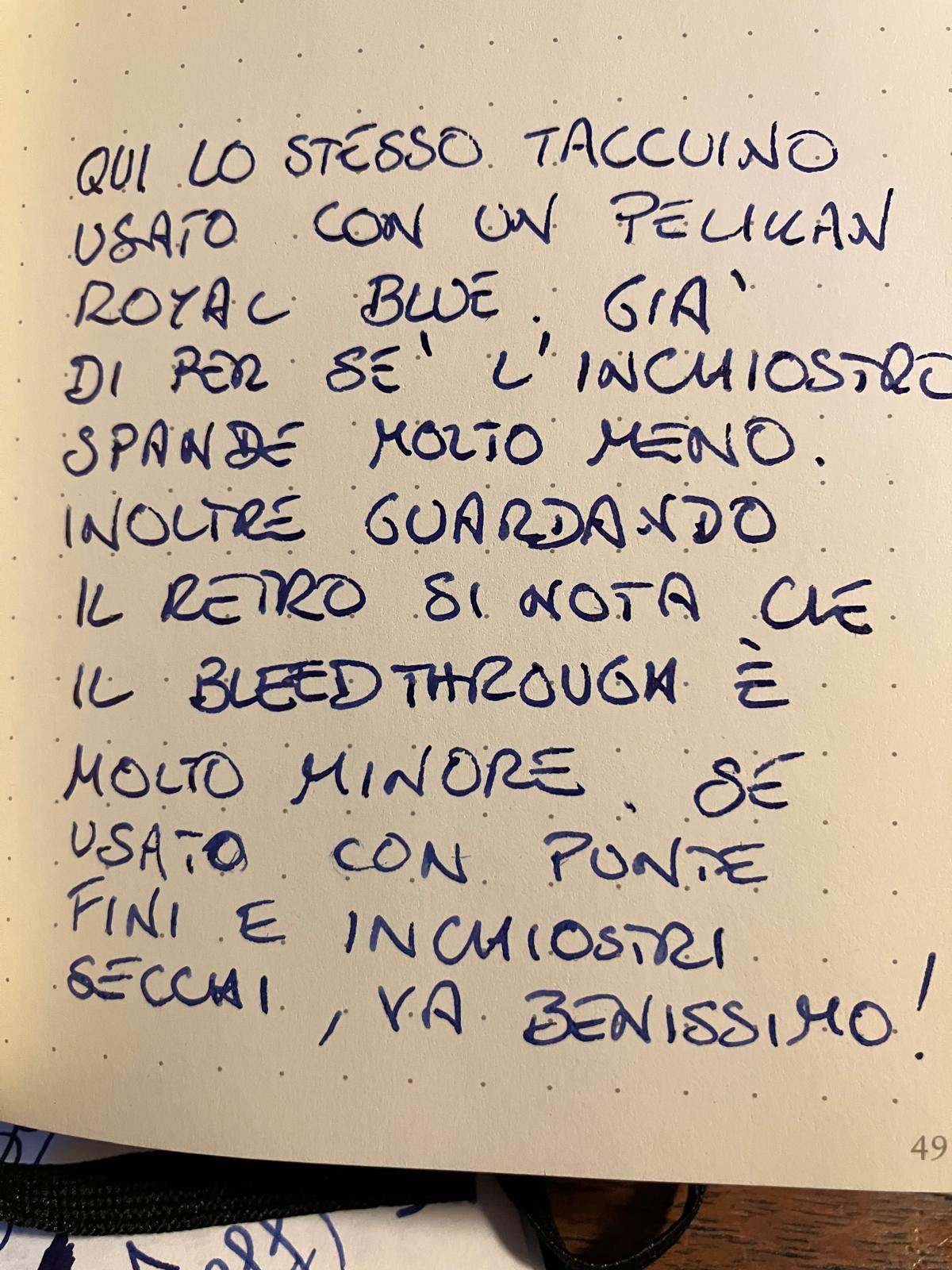 è evidente che con questa carta vanno usati inchiostri un po' più secchi (ma basta un normale Pelikan 4001 o Waterman Serenity per ridurre il bleed through)