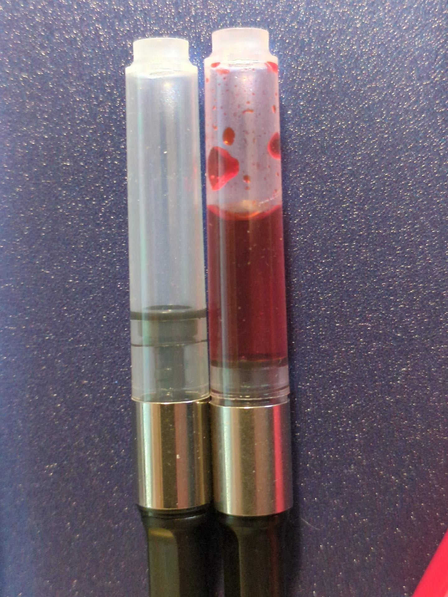 A destra quello che dovrebbe essere il "nuovo" converter Jinhao, fornito insieme alla Jinhao 82 (la mia dovrebbe essere identica a quella di @Enbi).