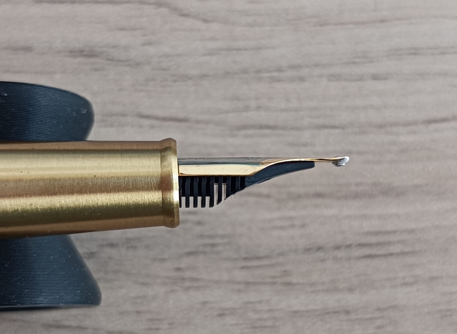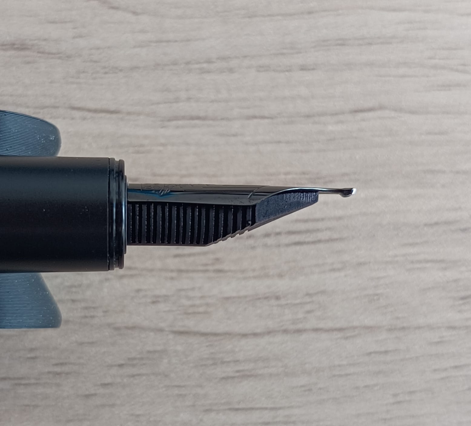 Noto comunque che non è facile trovare la posizione giusta, l'inclinazione sul piano non è 45, bisogna alzare maggiormente il pennino verso la verticale, altrimenti fatica a scrivere.