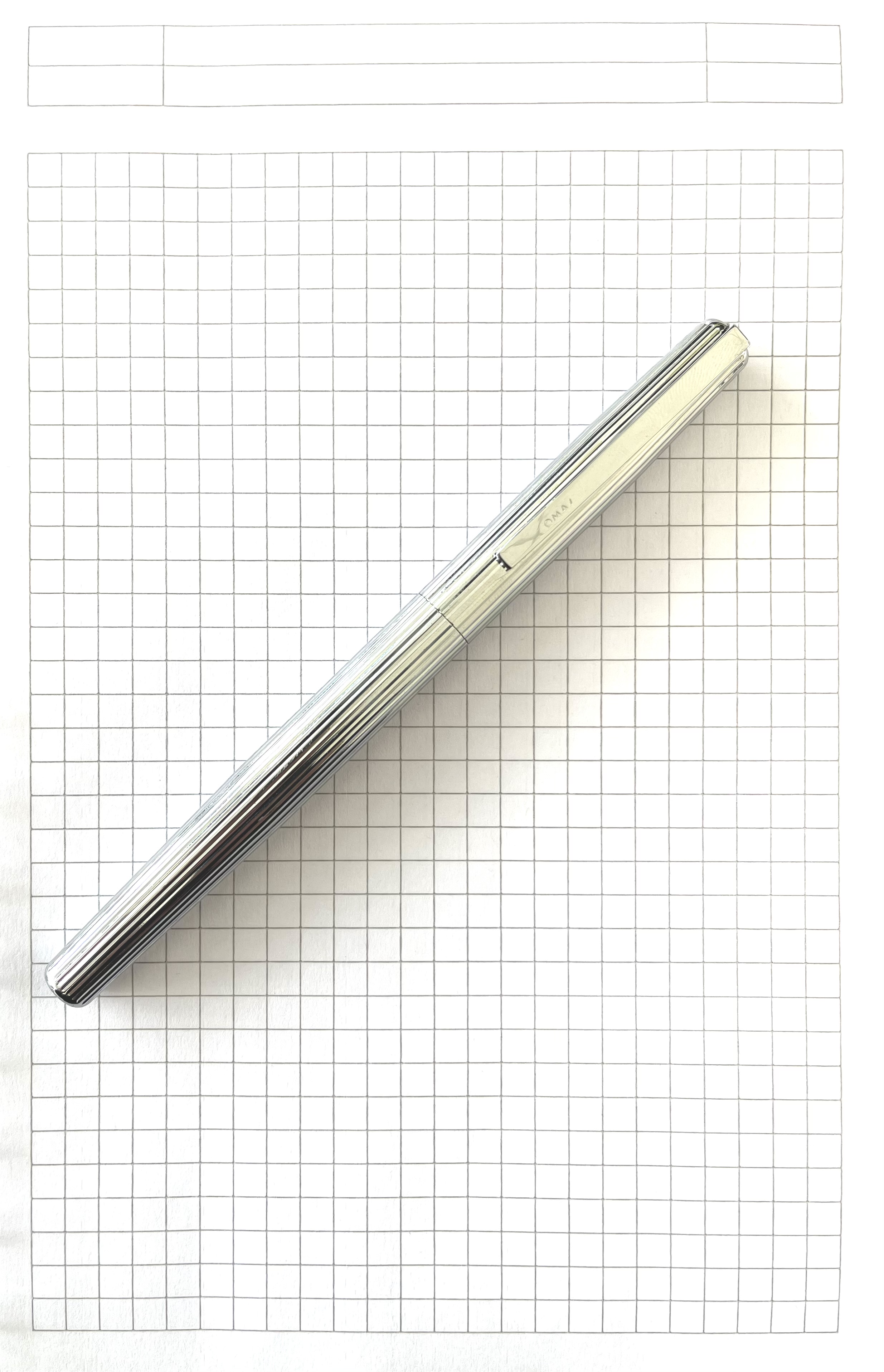 Una 'utilitaria' della Omas di cui non sono riuscito a recuperare informazioni. Assomiglia alla Mustang ma anche ad altri modelli. Era venduta da sola, un poco mal ridotta, e non ho avuto cuore di lasciarla lì... Un bagno di 24 ore ed è tornata come nuova! Ha un feedback deciso ma scrive che è una bellezza! Il pennino M, in acciaio, passa da un fine a un medio abbondante a seconda della carta. Ottimo flusso, abbastanza generoso da garantire quel poco di shading che tanto mi piace.