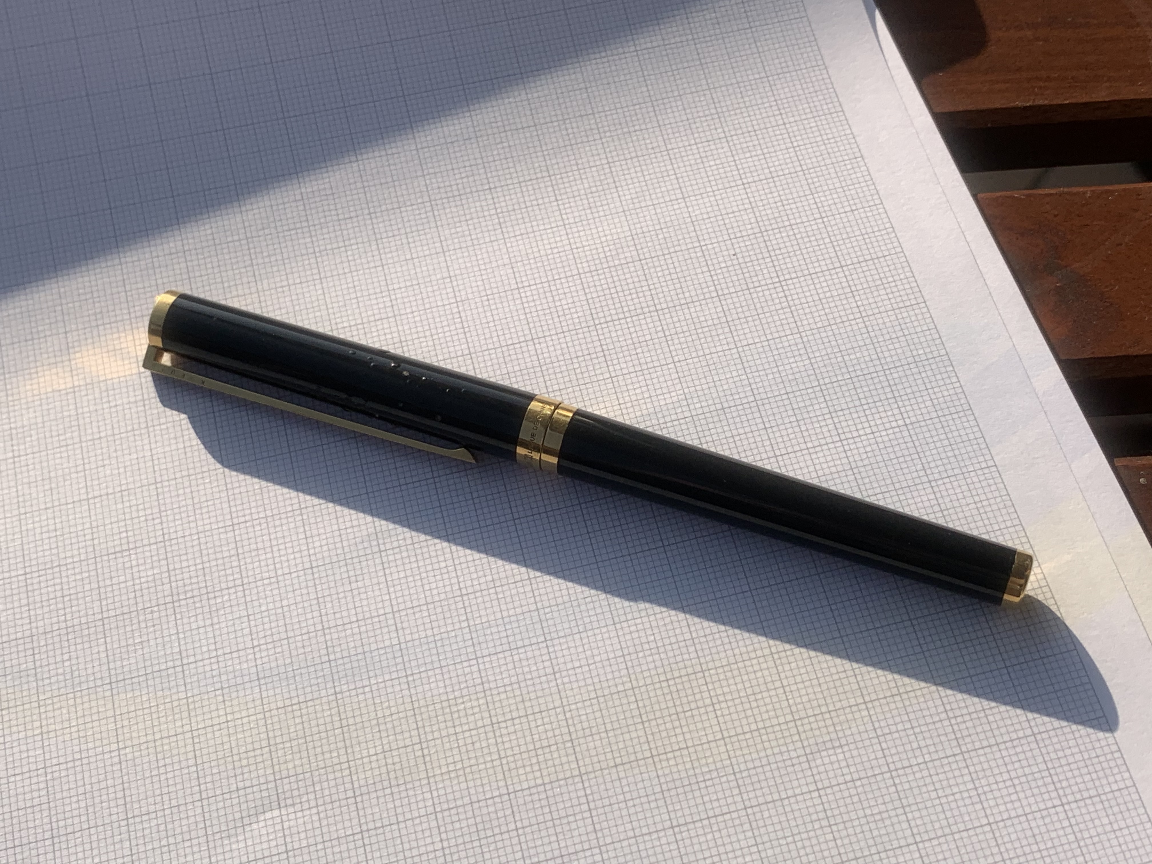 Pennino 18kt F scorrevole ed abbastanza preciso, a differenza delle ST Dupont attuali, questa ha l’attacco standard Parker/Aurora, ho quindi messo un converter Parker Deluxe e caricato con Salix. Dopo qualche giorno d’uso riscontro sempre la presenza di inchiostro sulla parte di sezione vicina al pennino, quando tolgo il cappuccio, durante l’uso non si riforma… altro quesito per l’area tecnica :D