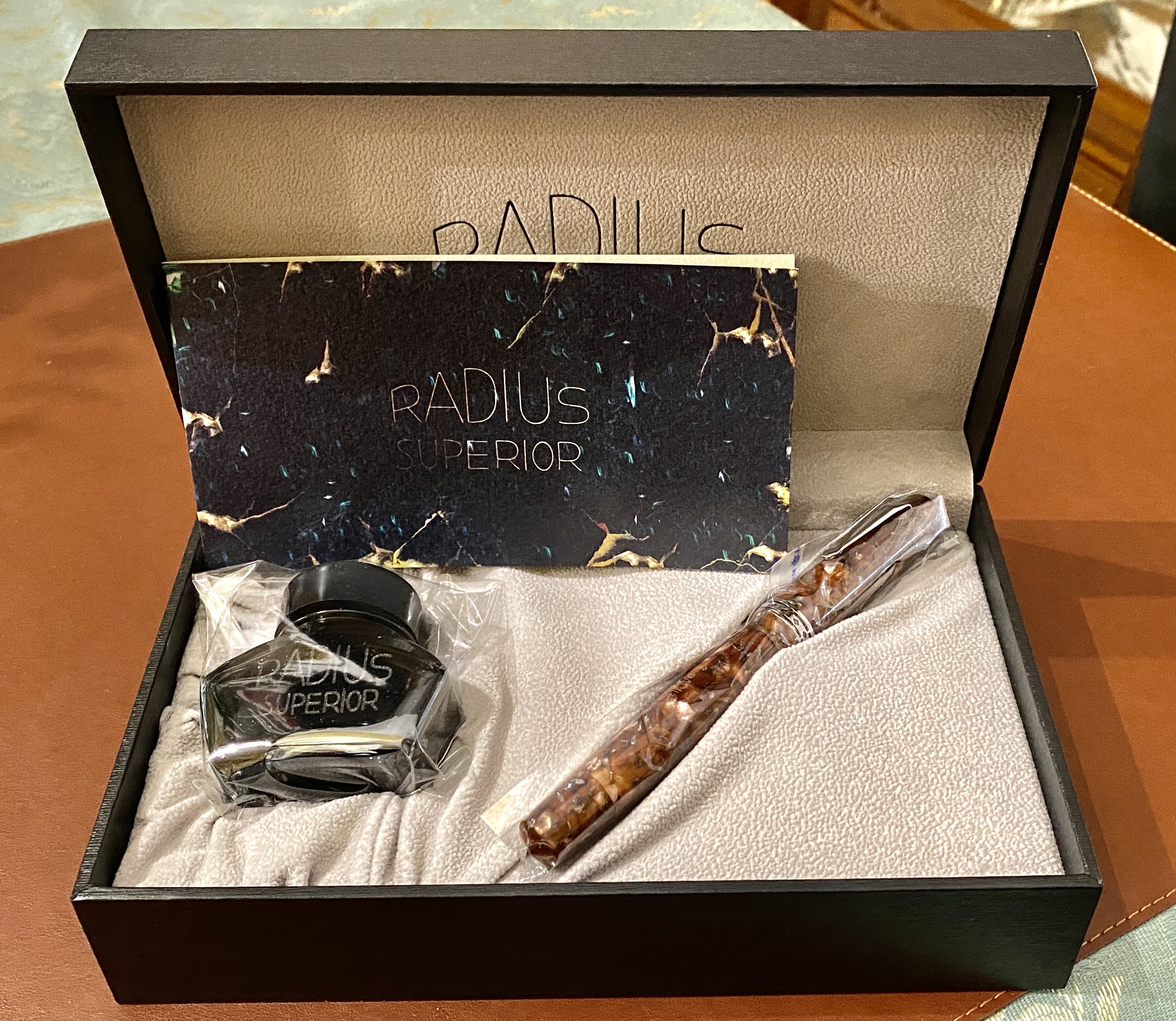 Si tratta di una Radius Autarchica in colorazione Monterosso Red con pennino in acciaio EF flessibile.