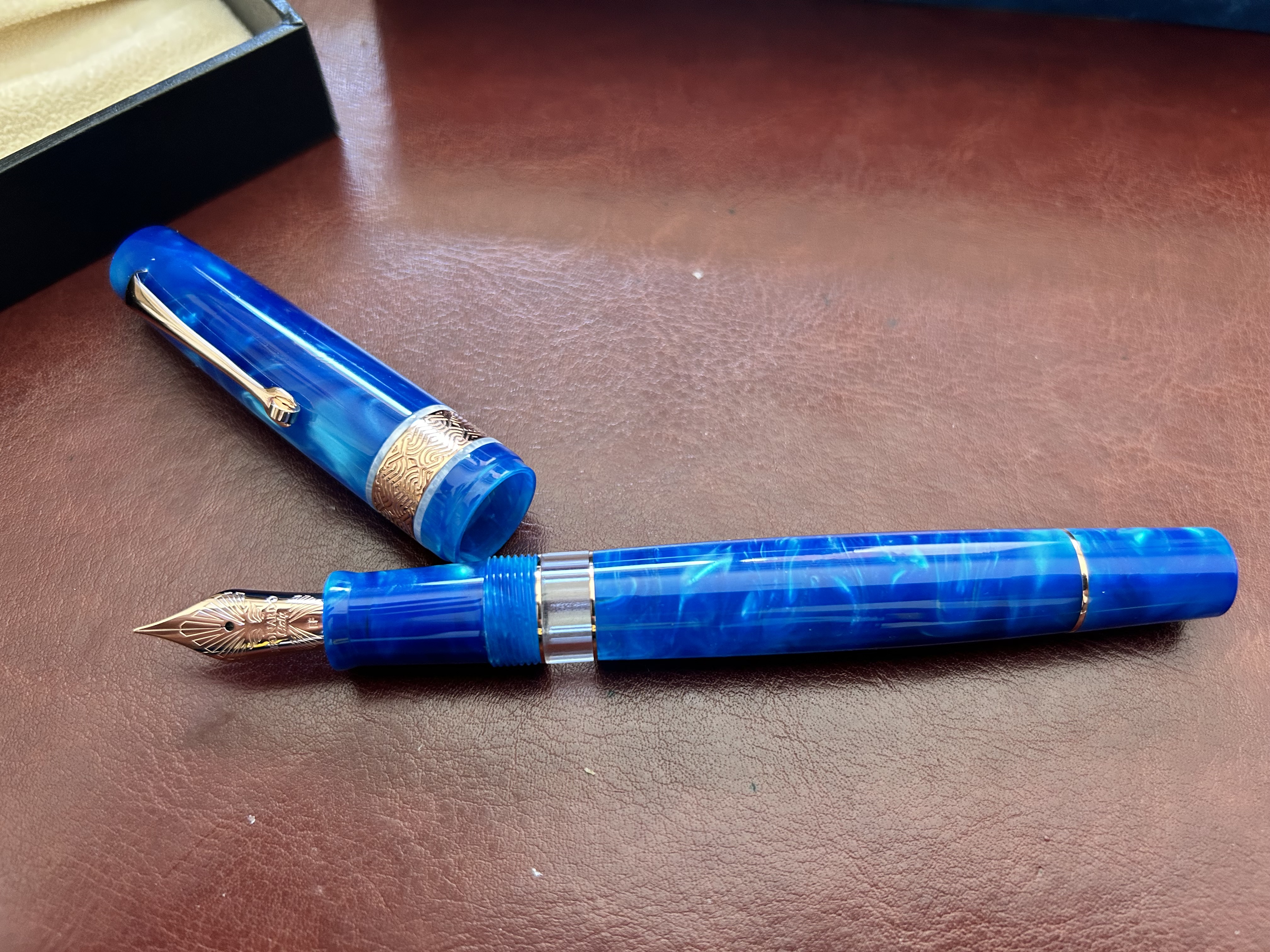 Questa è come una "grail" penna, da Maiora per Stilografica Corsani, "Amarcord", fatto con un vintage acetato di cellulosa. Ho scelto la finitura in palladium pennina stub, che scrive perfettamente. È una pennina 14K