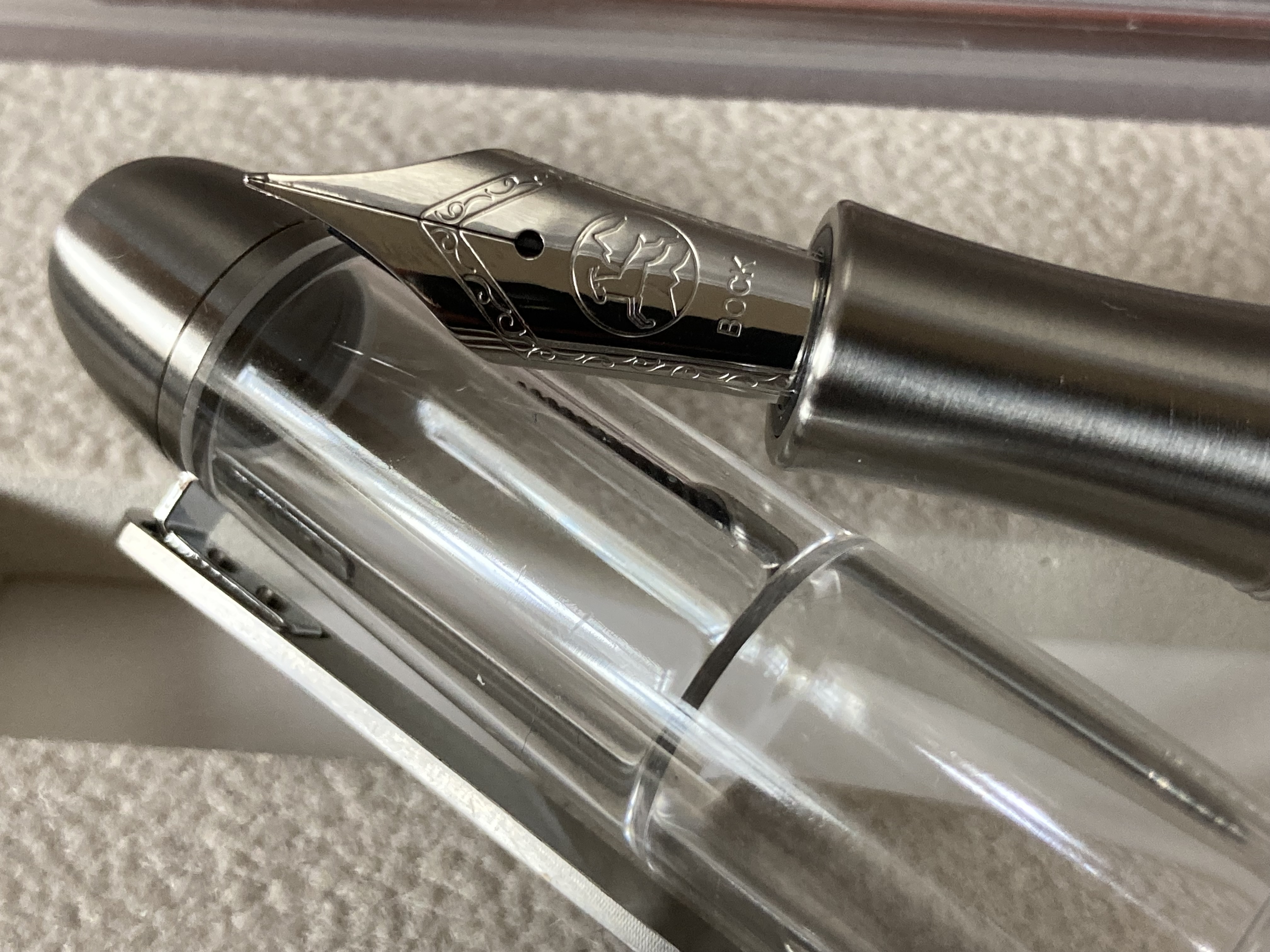 Poi il pennino Bock dovrebbe essere una garanzia per la scrittura... Peccato perché non mi piacciono le penne trasparenti, sennò ci avrei fatto un pensierino ;) .