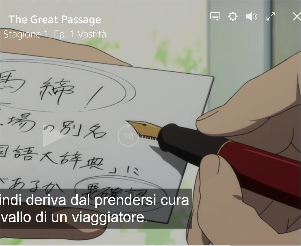 Nell'anime (cartone animato giapponese) "The Great Passage" il protagonista è molto portato per la filologia e viene "arruolato" per la scrittura di un nuovo grande dizionario. In due puntate, due stilografiche
